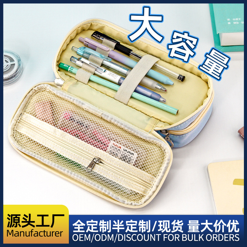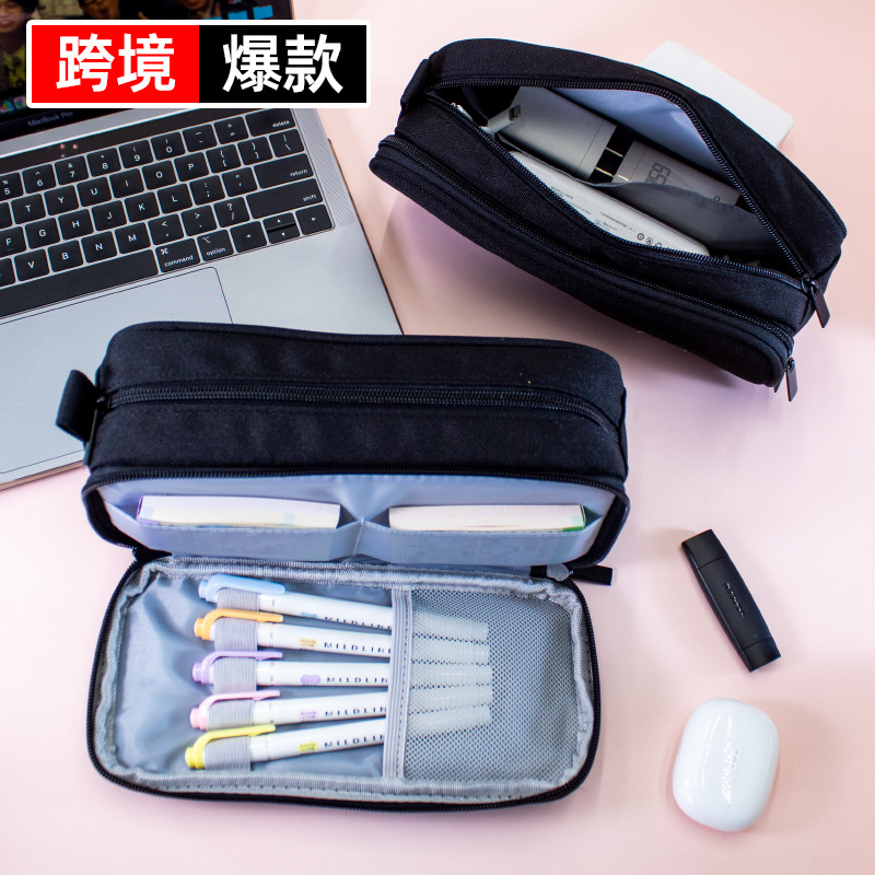 新款原创双层大容量笔袋外贸学生文具收纳包高颜值简约多功能笔盒
