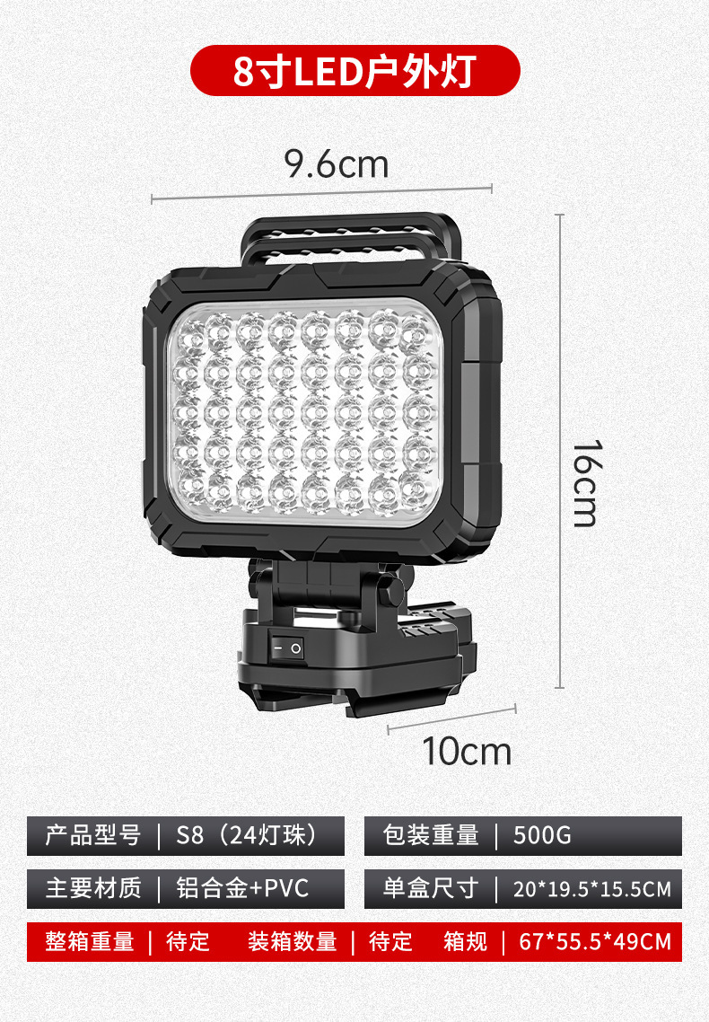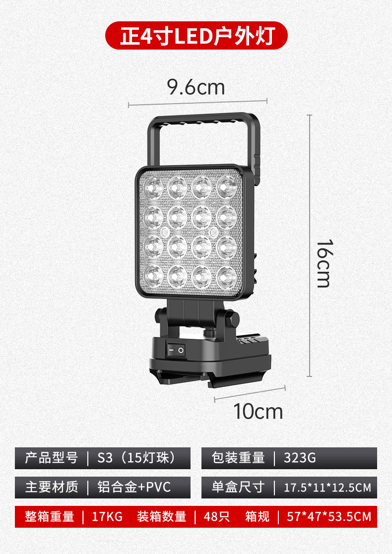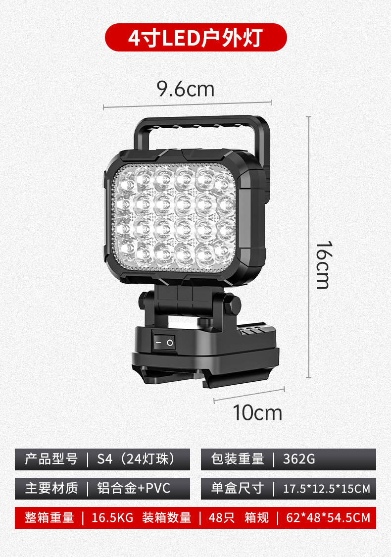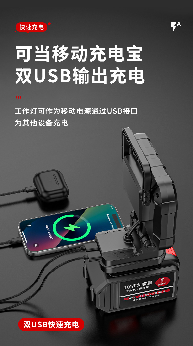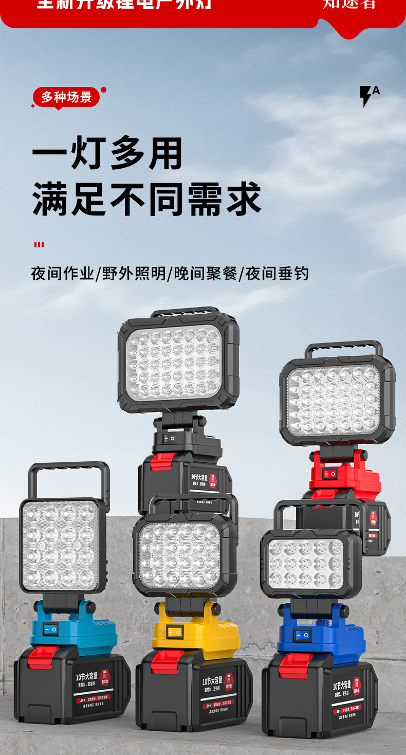 锂电照明灯手提式户外适配德伟牧田米沃奇锂电插脚照明应急维修灯
