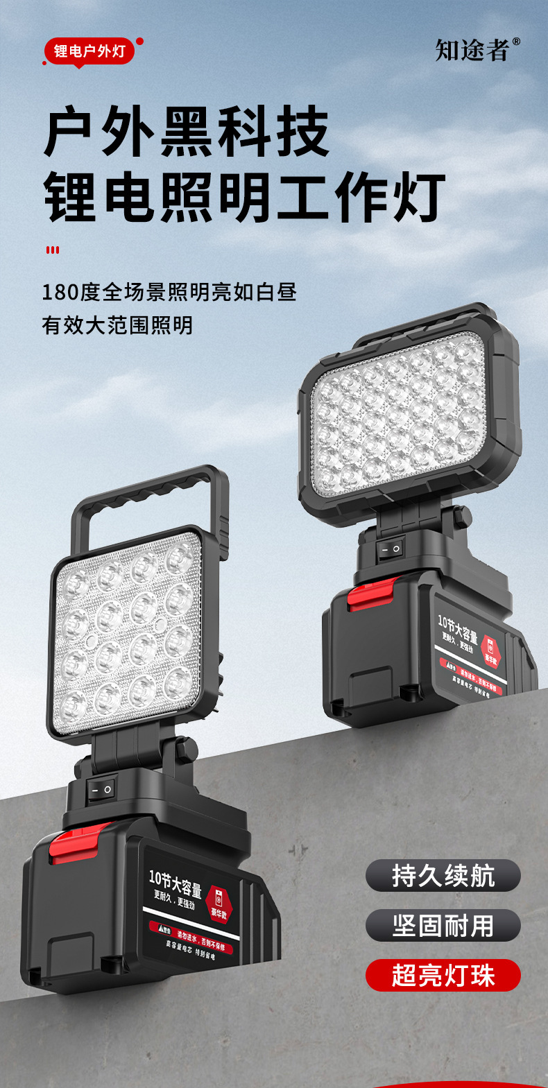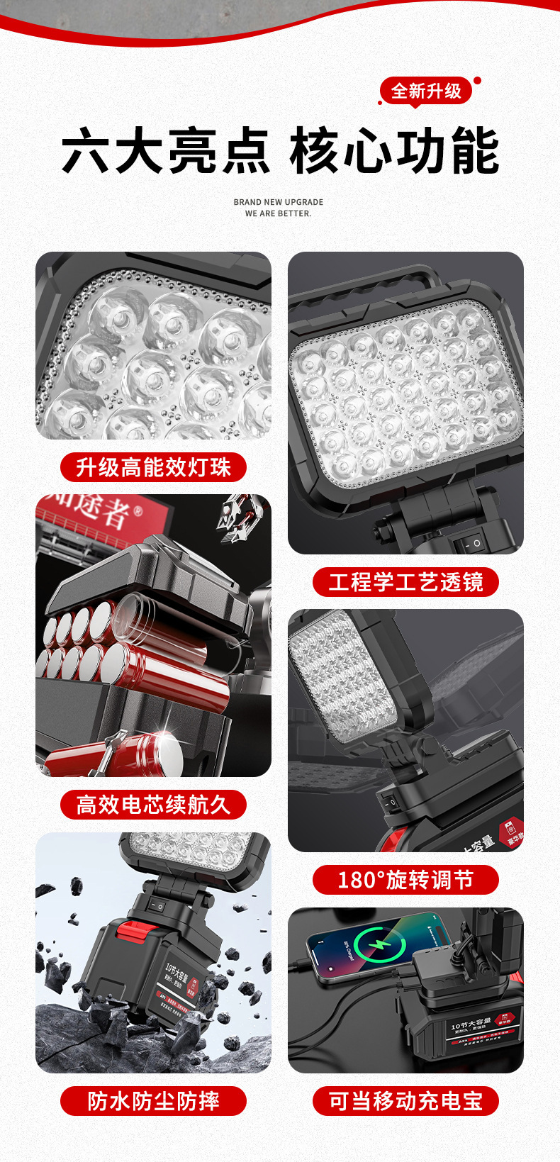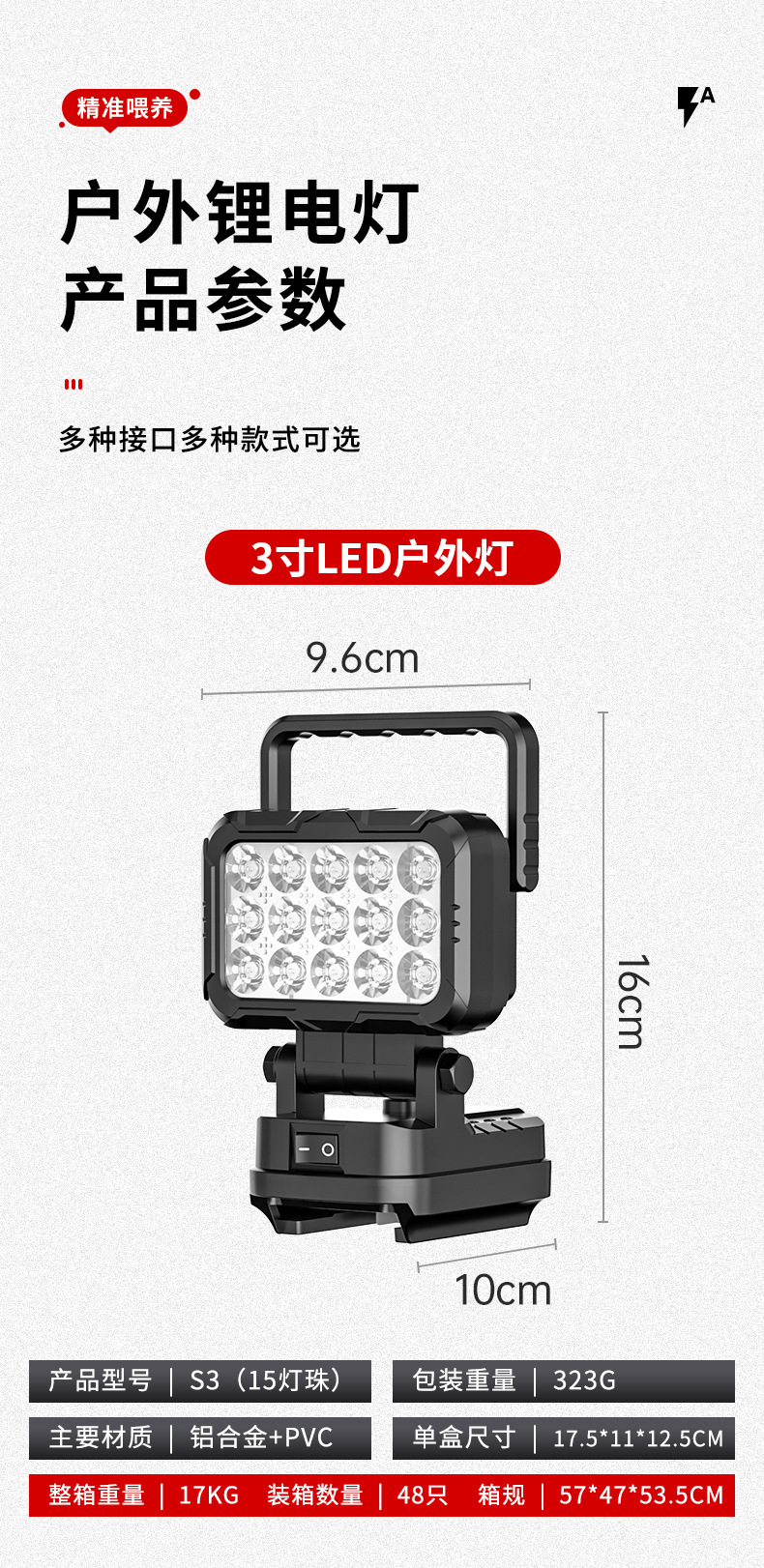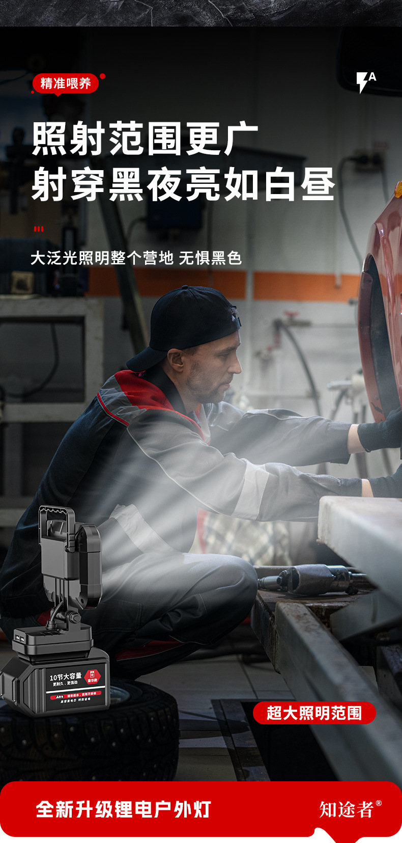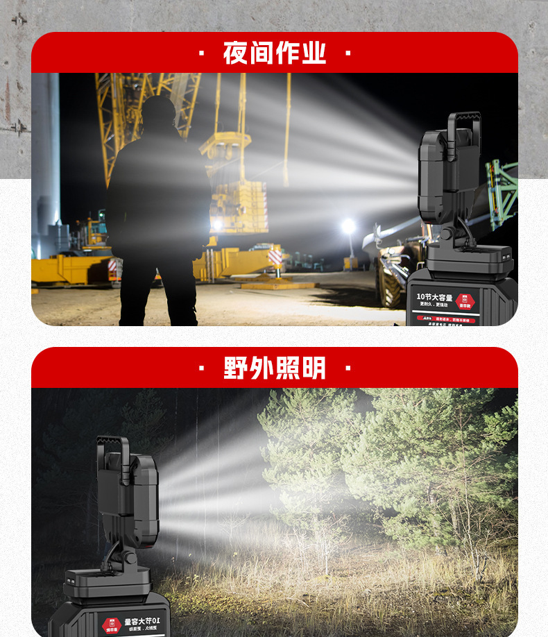 锂电照明灯手提式户外适配德伟牧田米沃奇锂电插脚照明应急维修灯