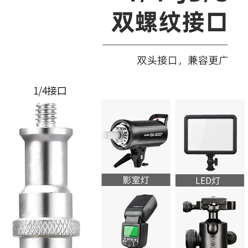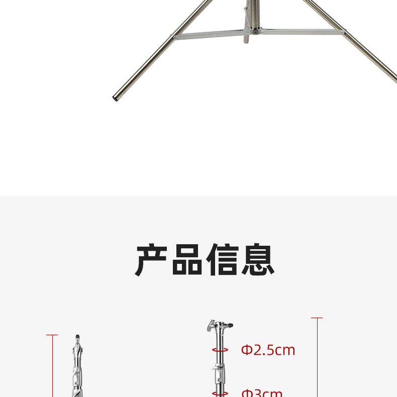 新款三脚架不锈钢材质影视摄影专用弹簧缓冲落地灯架加重加厚加粗