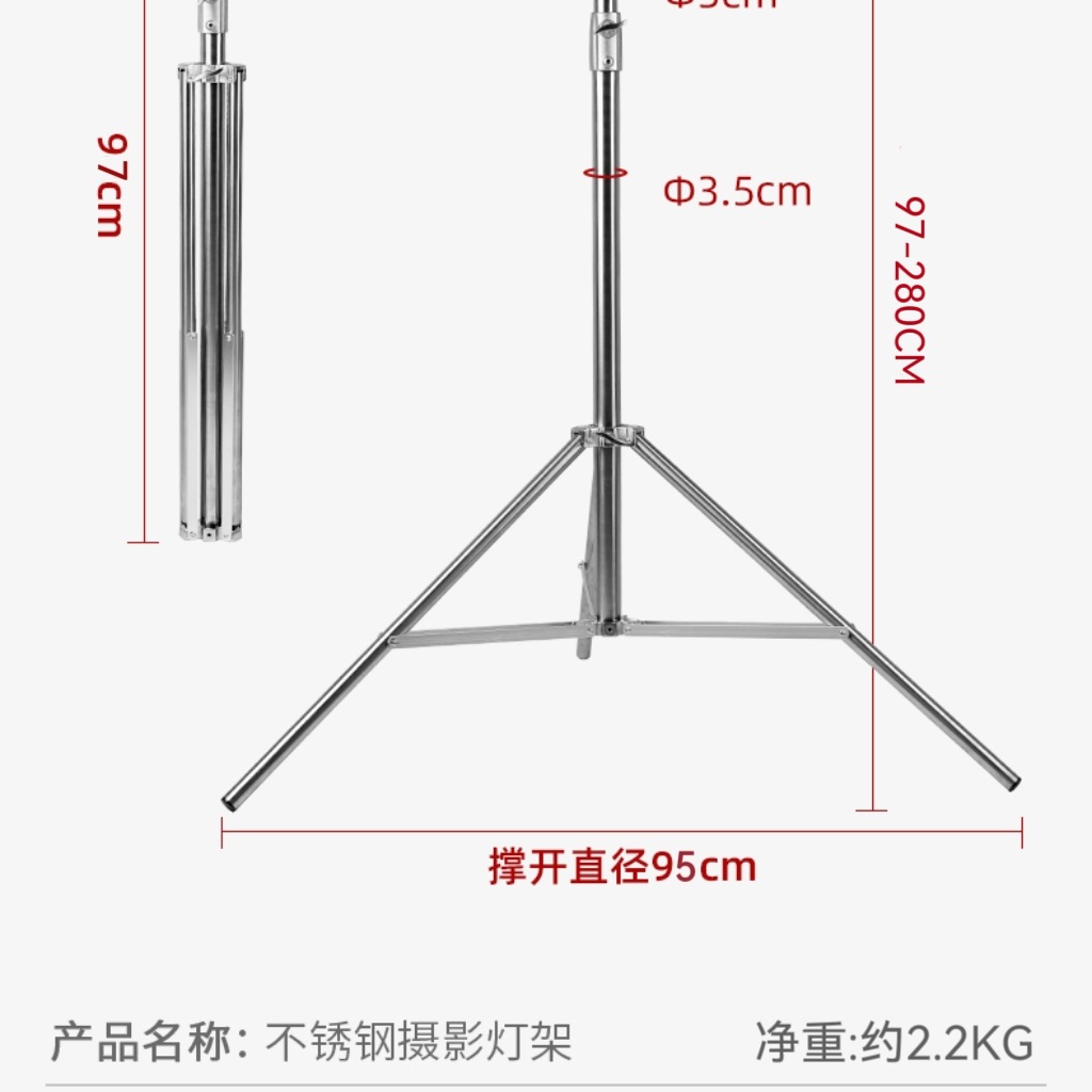 2.8米不锈钢灯架加厚全金属加粗补光灯支架多功能背景架摄影灯架