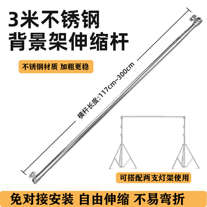 3メートルステンレス横棒背景架灯架c型架通用支持棒背景紙背景布影棚太棒