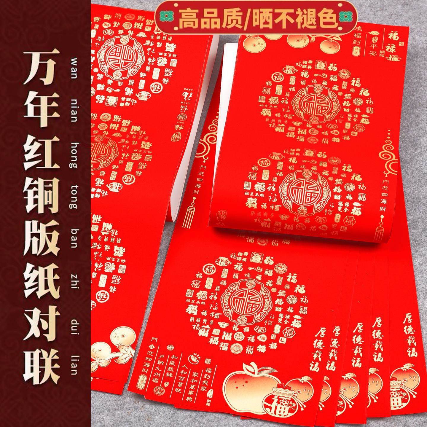 春节铜版对联纸高档加厚手写空白春联不褪色七言瓦当万年红铜版纸