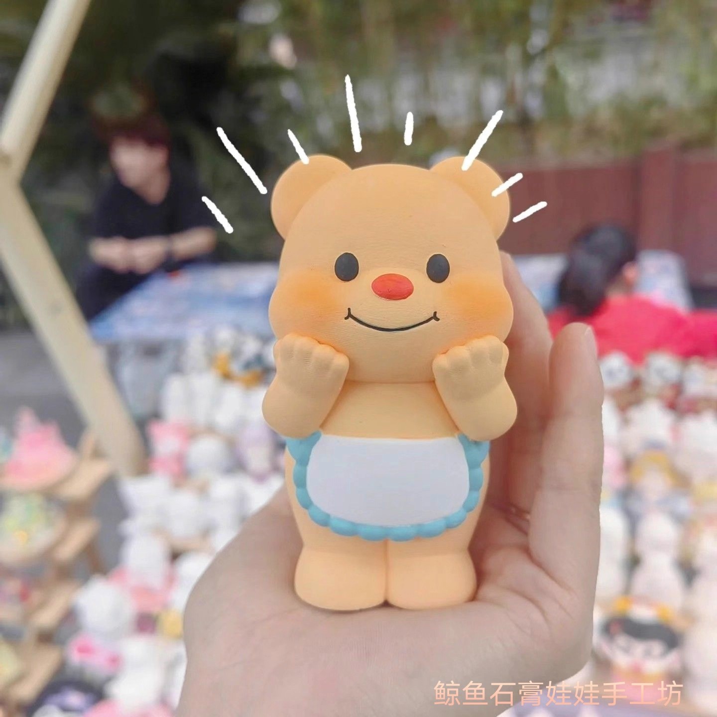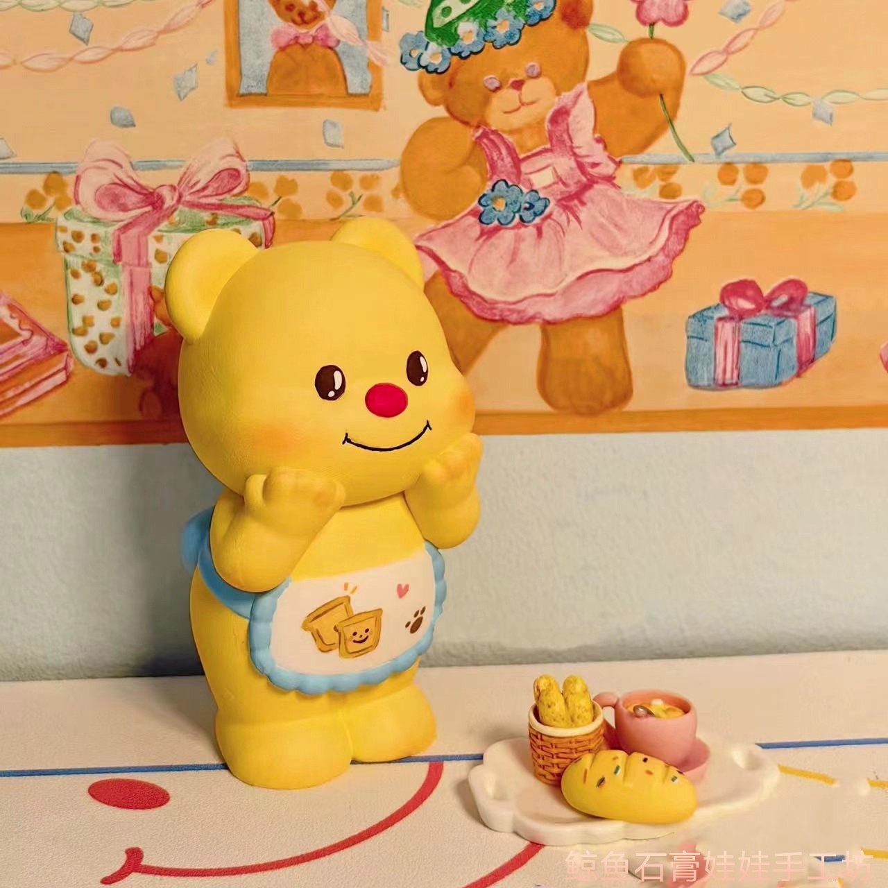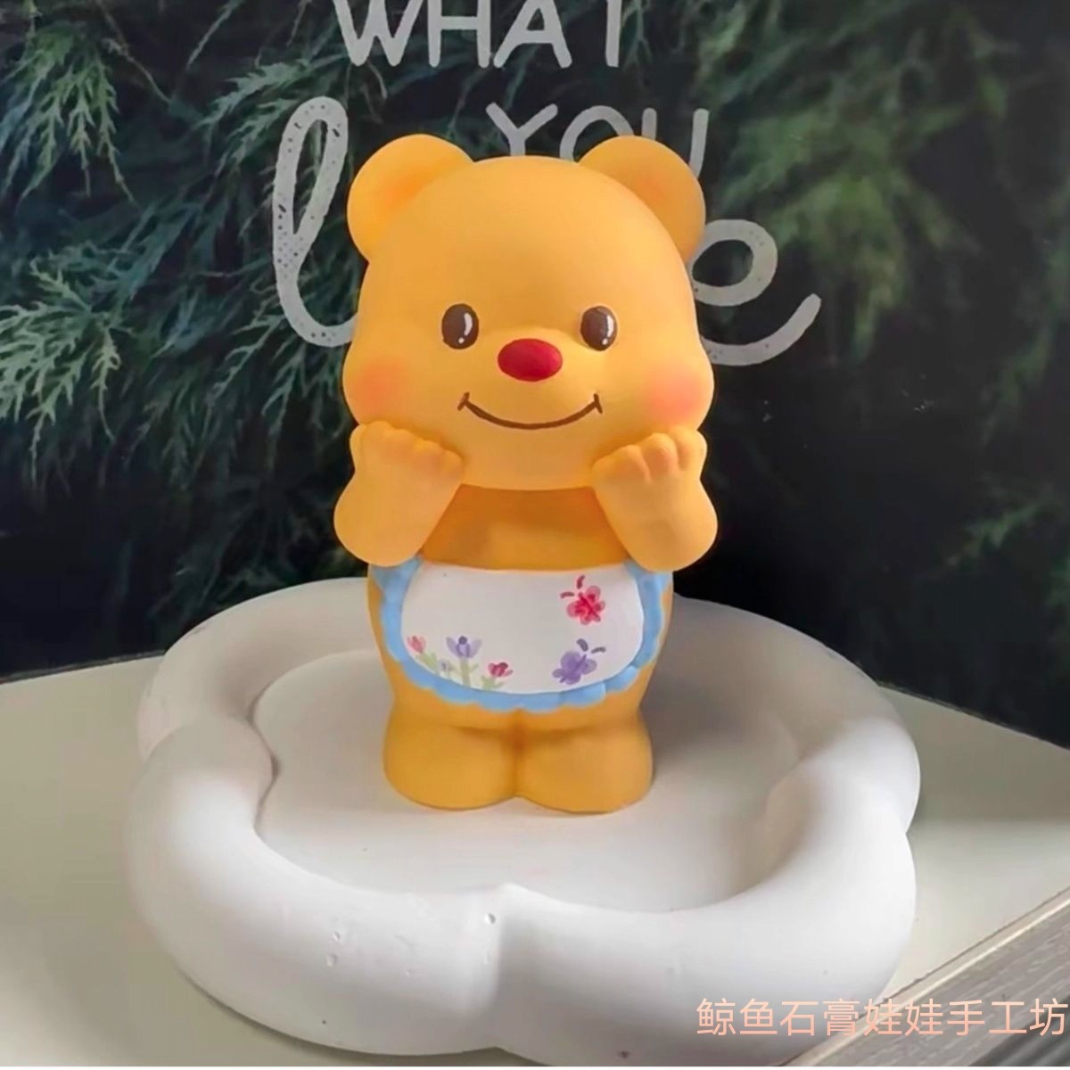 网红黄油小熊石膏娃娃涂色白胚车载公仔diy创意手工3立体石膏摆件
