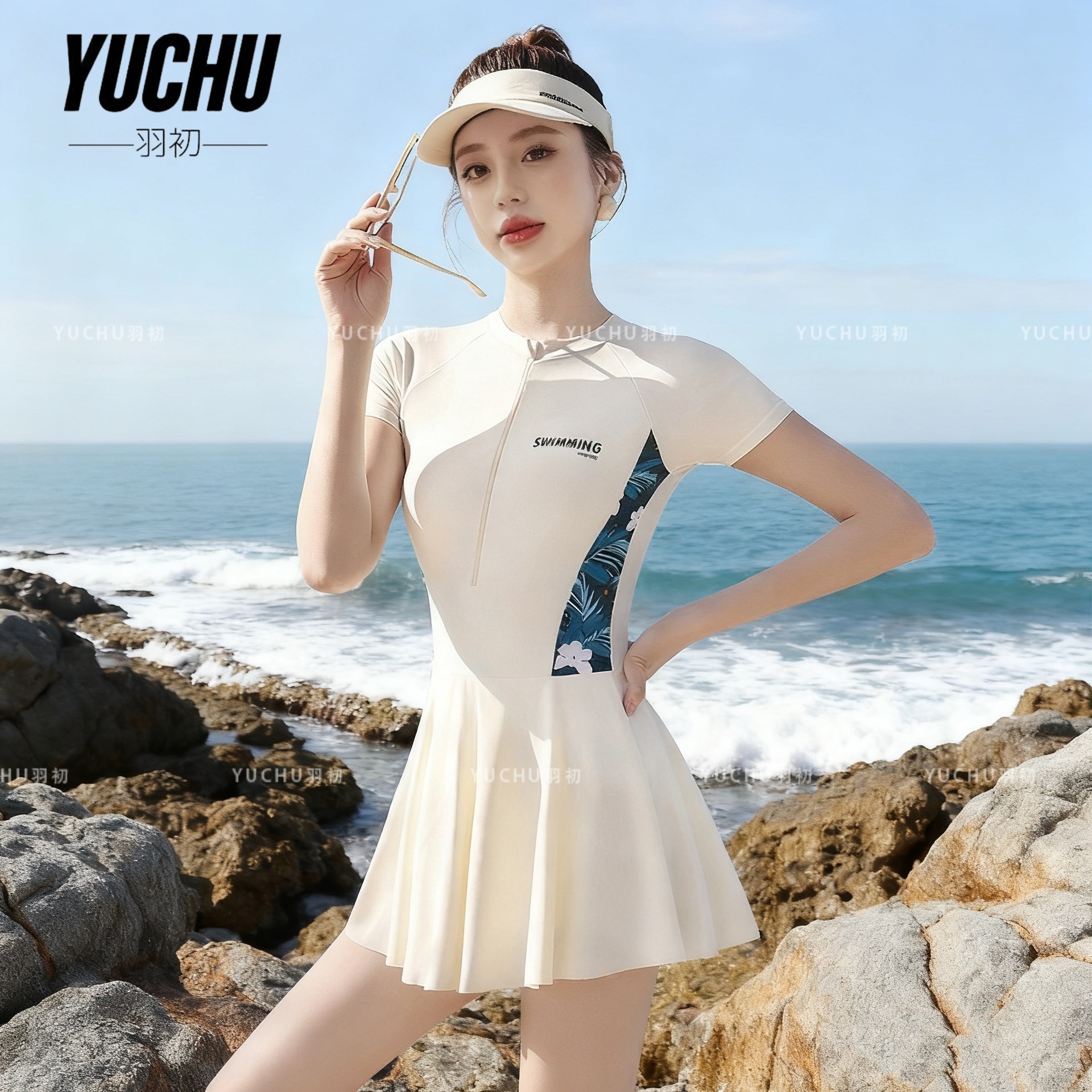 2025高级感纯欲小胸聚拢保守遮肉显瘦连体裙式泳衣夏海边度假泳装