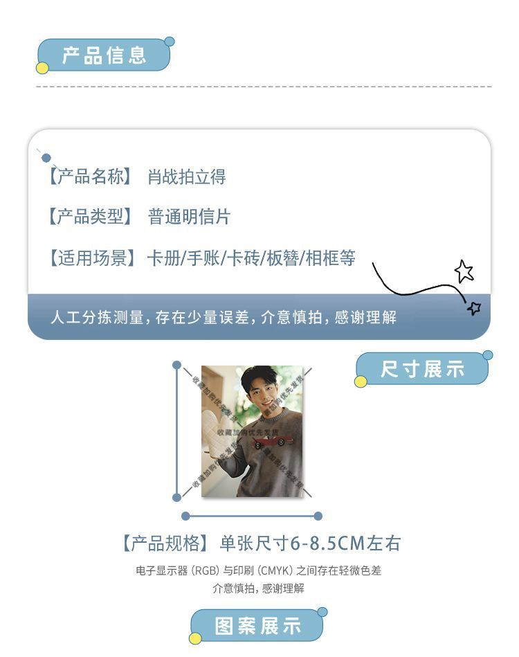 尺寸 肖战周边纪念明信片肖战小卡【18张/一套】(不重复),肖战周边纪念明信片肖战小卡【36张/两套】(重复),肖战周边纪念明信片肖战小卡【54张/三套】(重复)