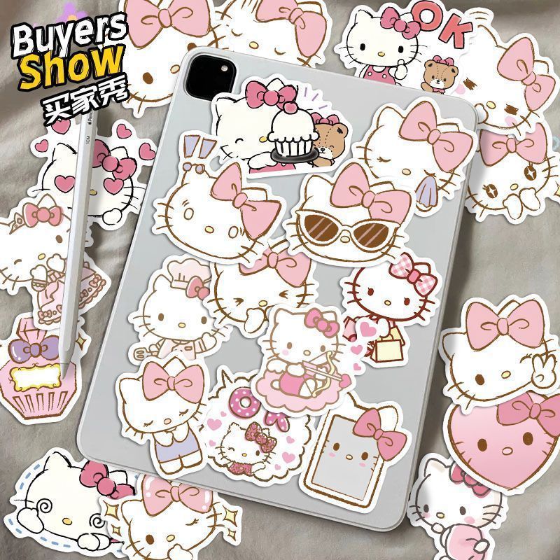 100张粉色Hello Kitty贴纸凯蒂猫KT猫可爱手账手机壳水杯防水贴画