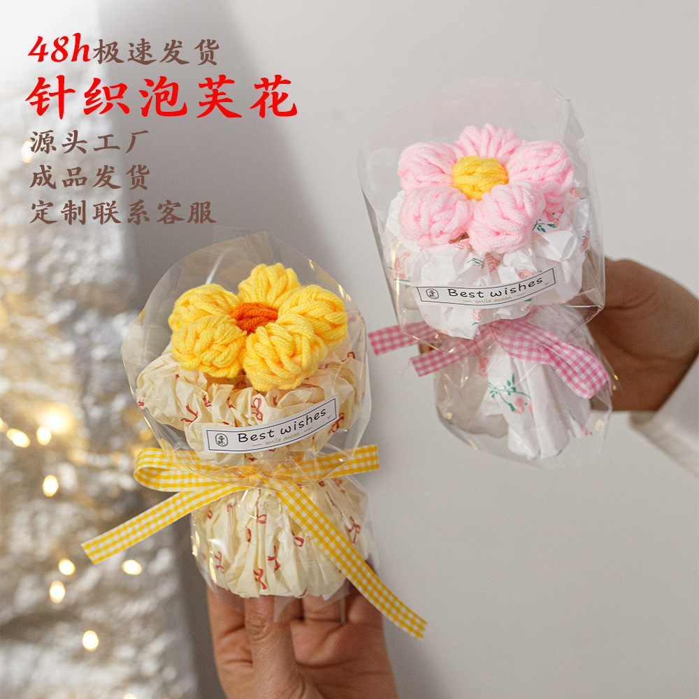 小さなギフト、高級感のある造花、永遠のニットパフフラワーブーケ、完成品装飾、卸売、越境、造花、記念品