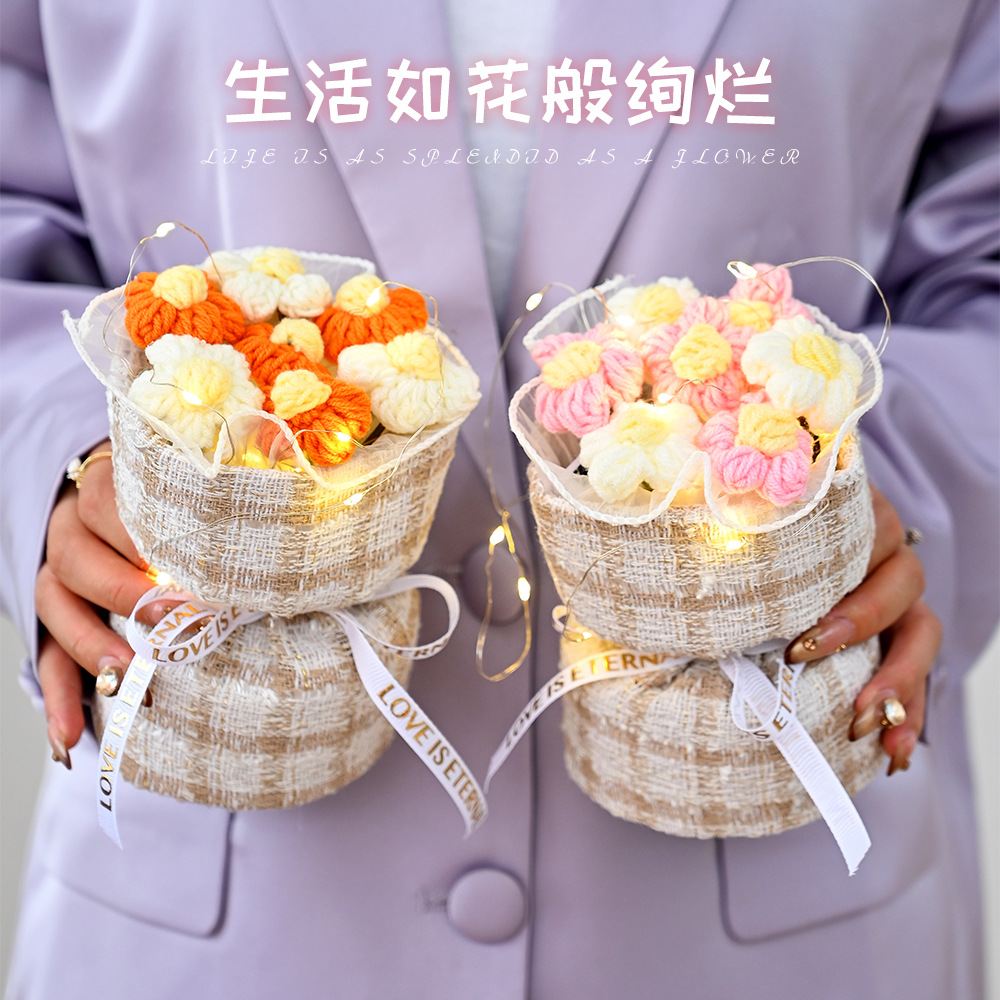 バレンタインデー、クリスマス、小香風ニットパフフラワー、手作り完成品、毛糸小花束ギフト、卸売、越境販売