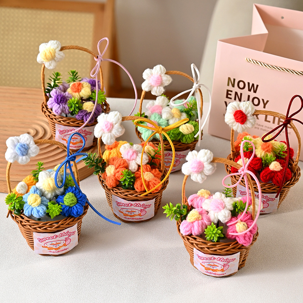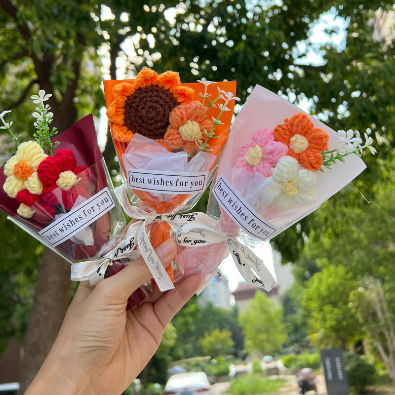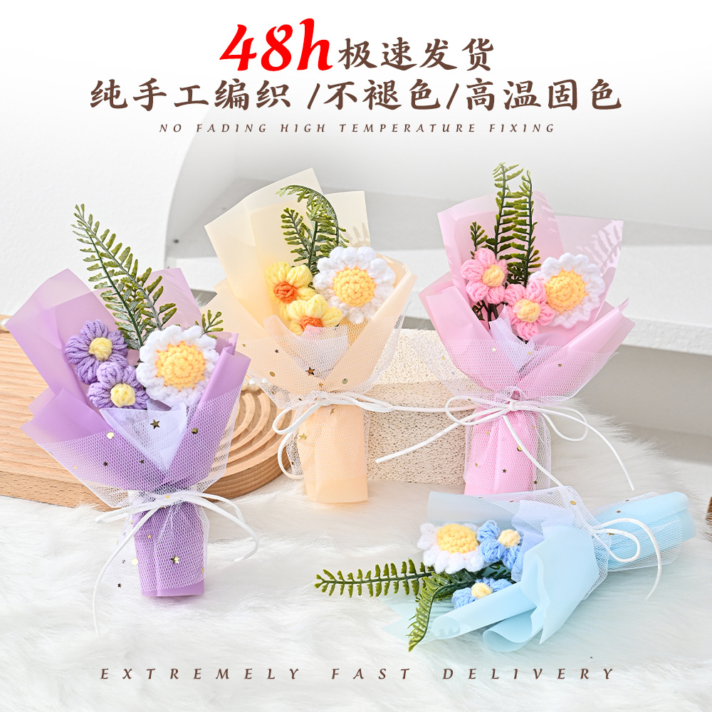 クロスボーダーニット造花ミニブーケ、ミニチュアで新鮮な毛糸の花、友達へのクリエイティブなギフト、編み込みエターナルフラワー完成品