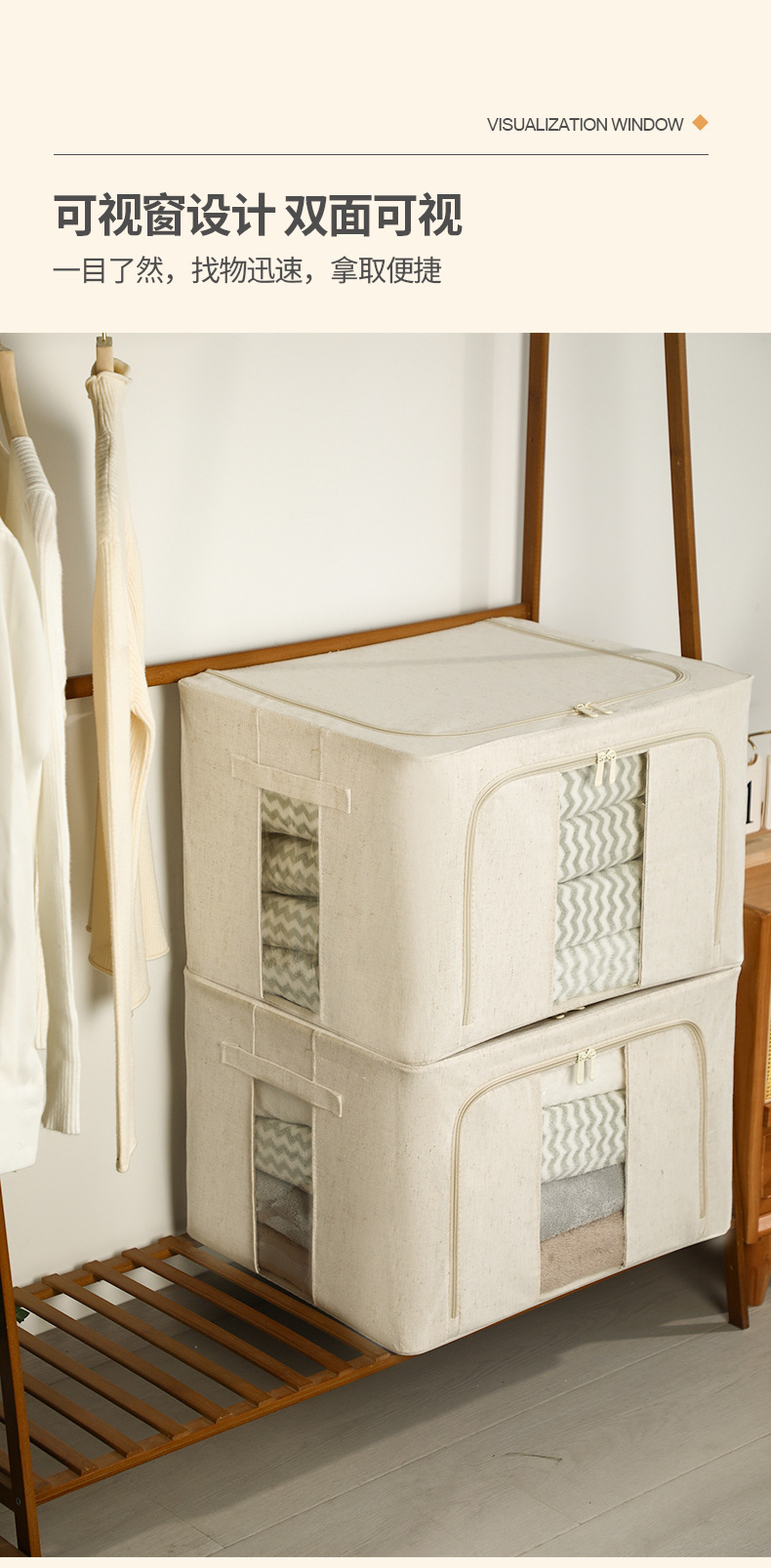 天山棉麻收纳箱布艺可视窗衣柜衣服整理箱大容量可折叠整理神器