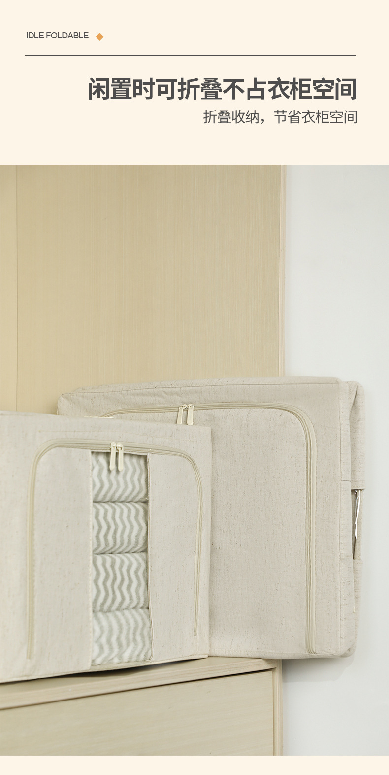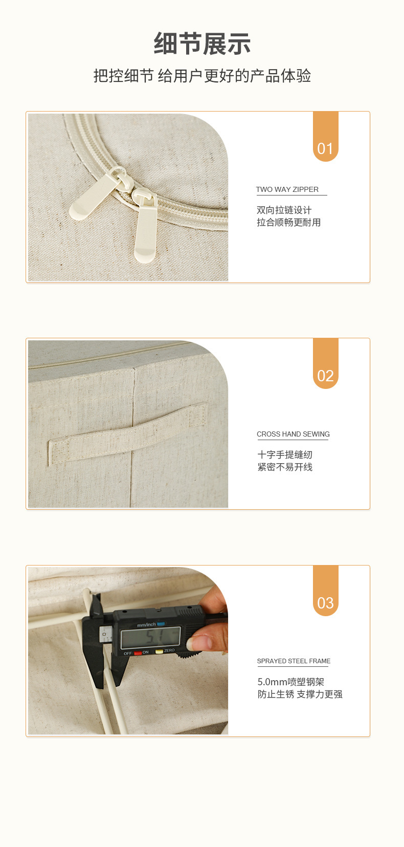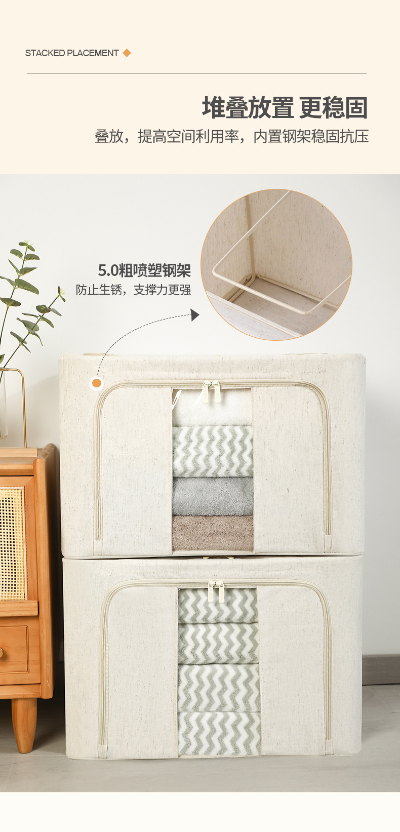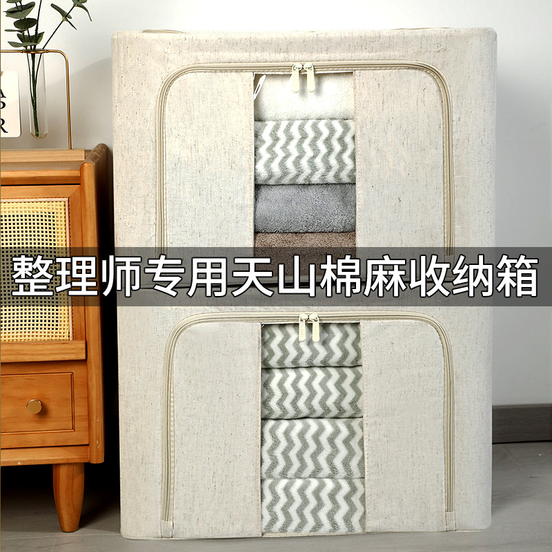 PP板喷塑加粗5.0钢架天山棉麻收纳箱整理师专用家居衣物收纳棉麻