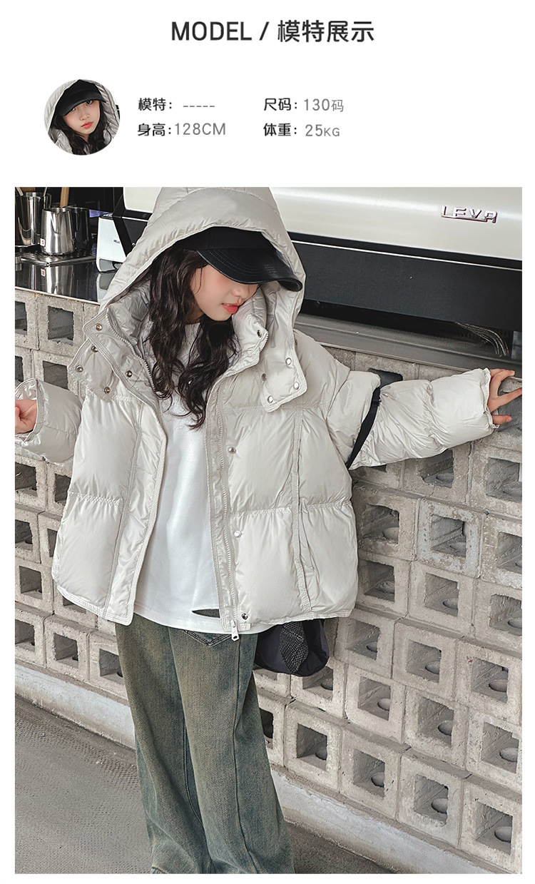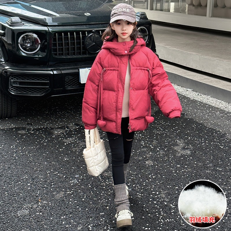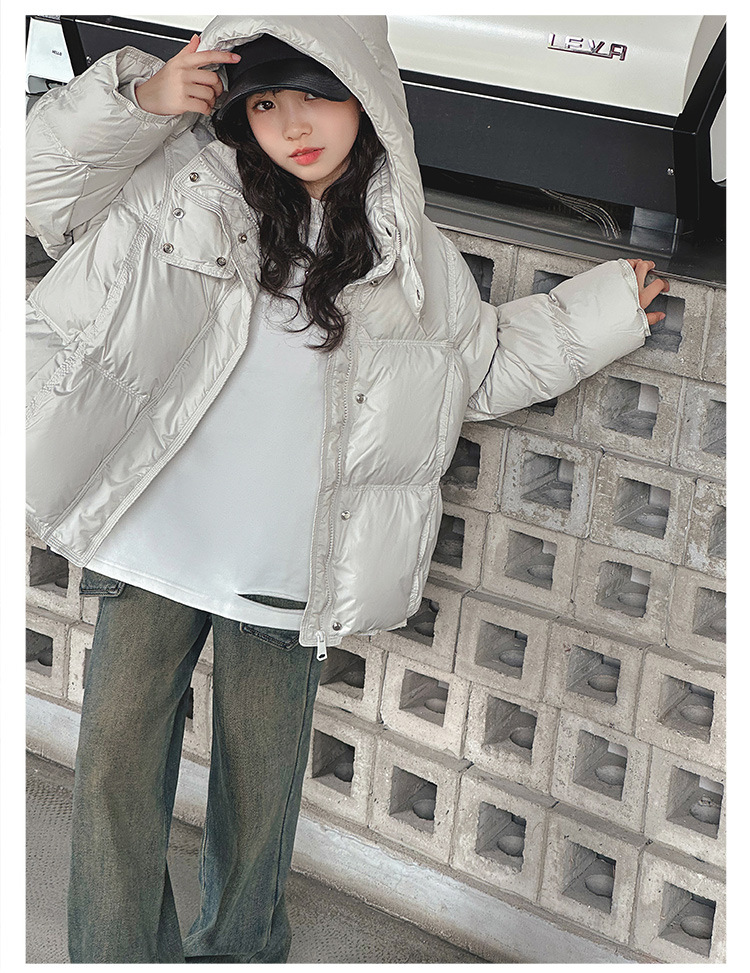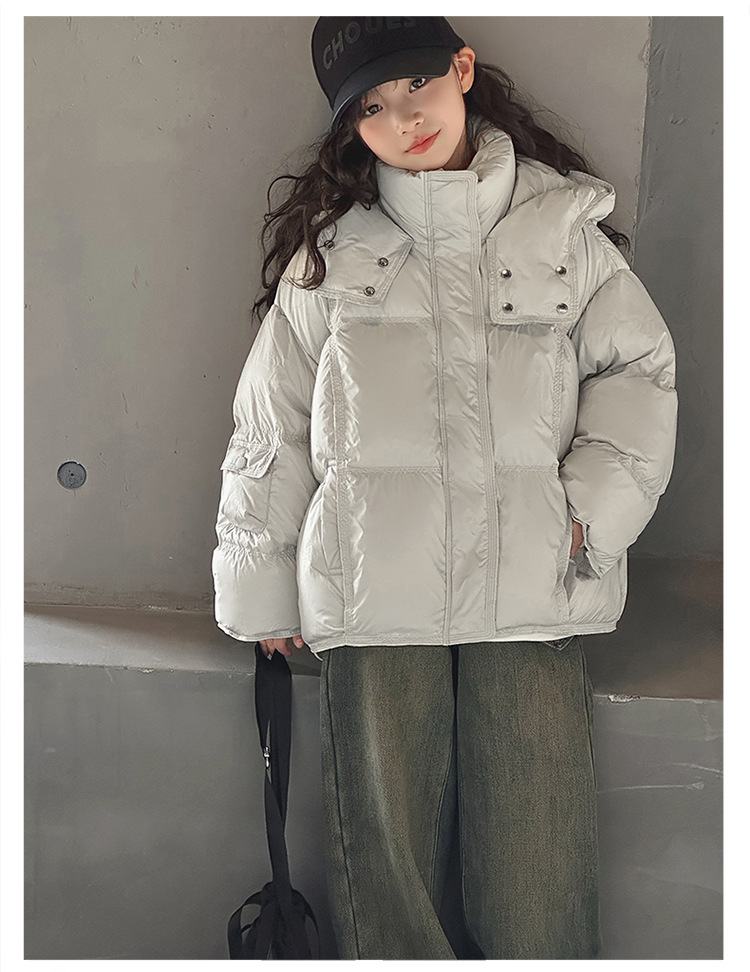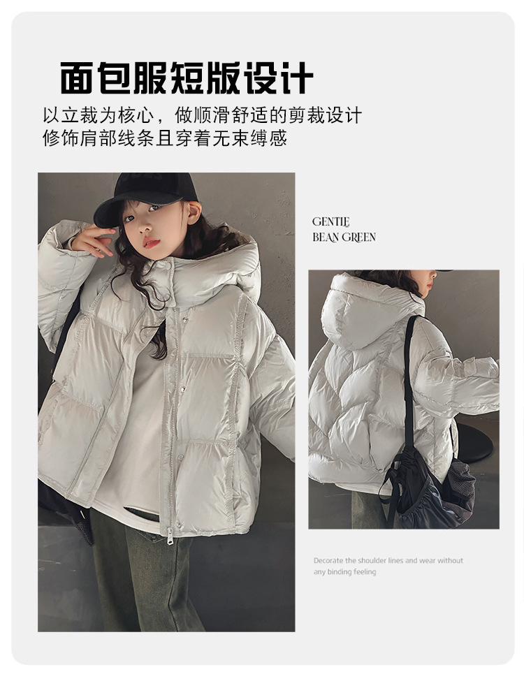 女童洋气羽绒服2025冬装新款大童女孩加厚连帽白鸭绒面包服防寒服