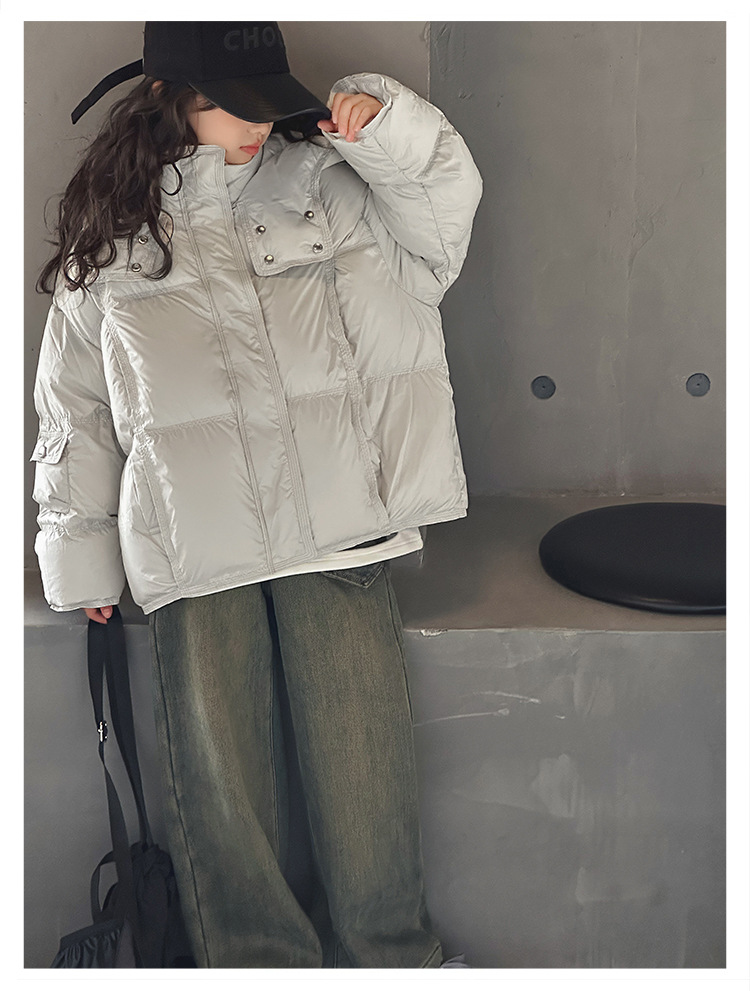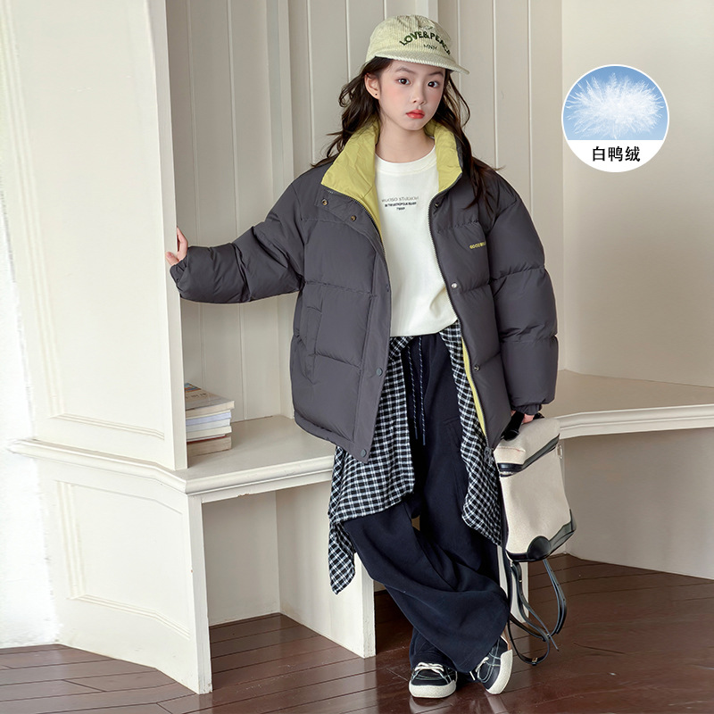 儿童冬装羽绒服2025新款大童时髦洋气百搭休闲立领加厚白鸭绒外套