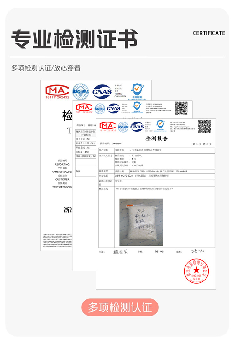 含绒量 86%~90%