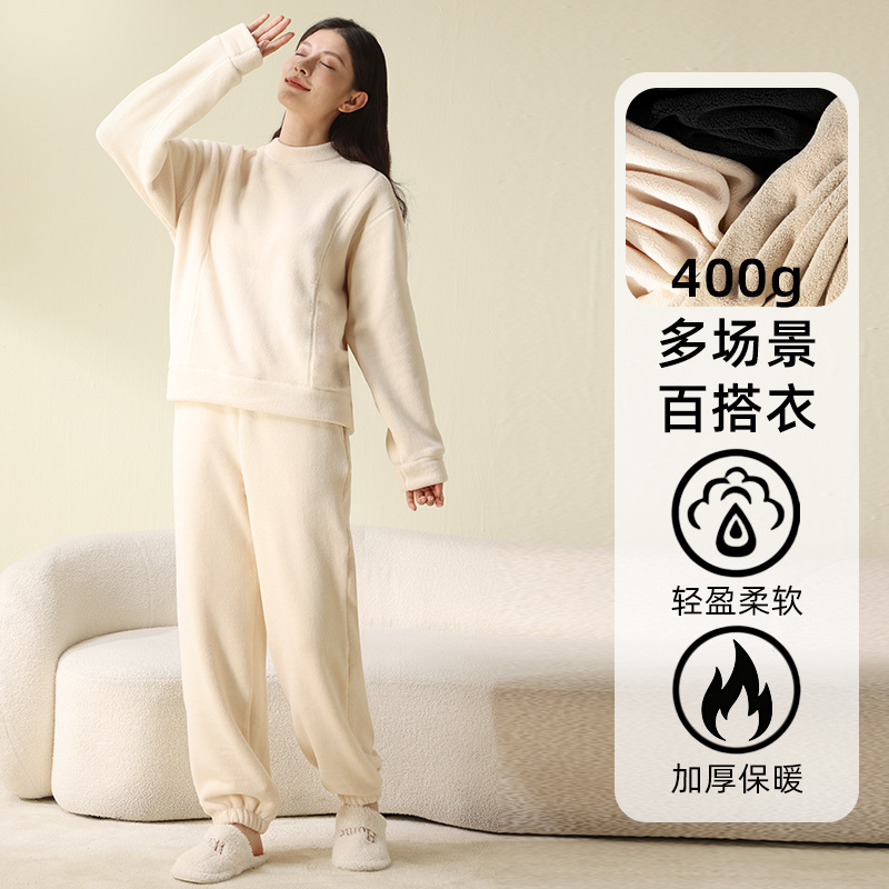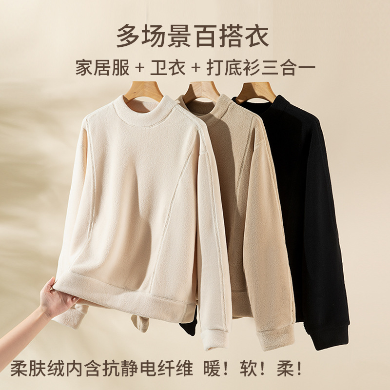 柔肤绒多场景睡衣女款小立领卫衣家居打底衫三合一舒适上衣L377