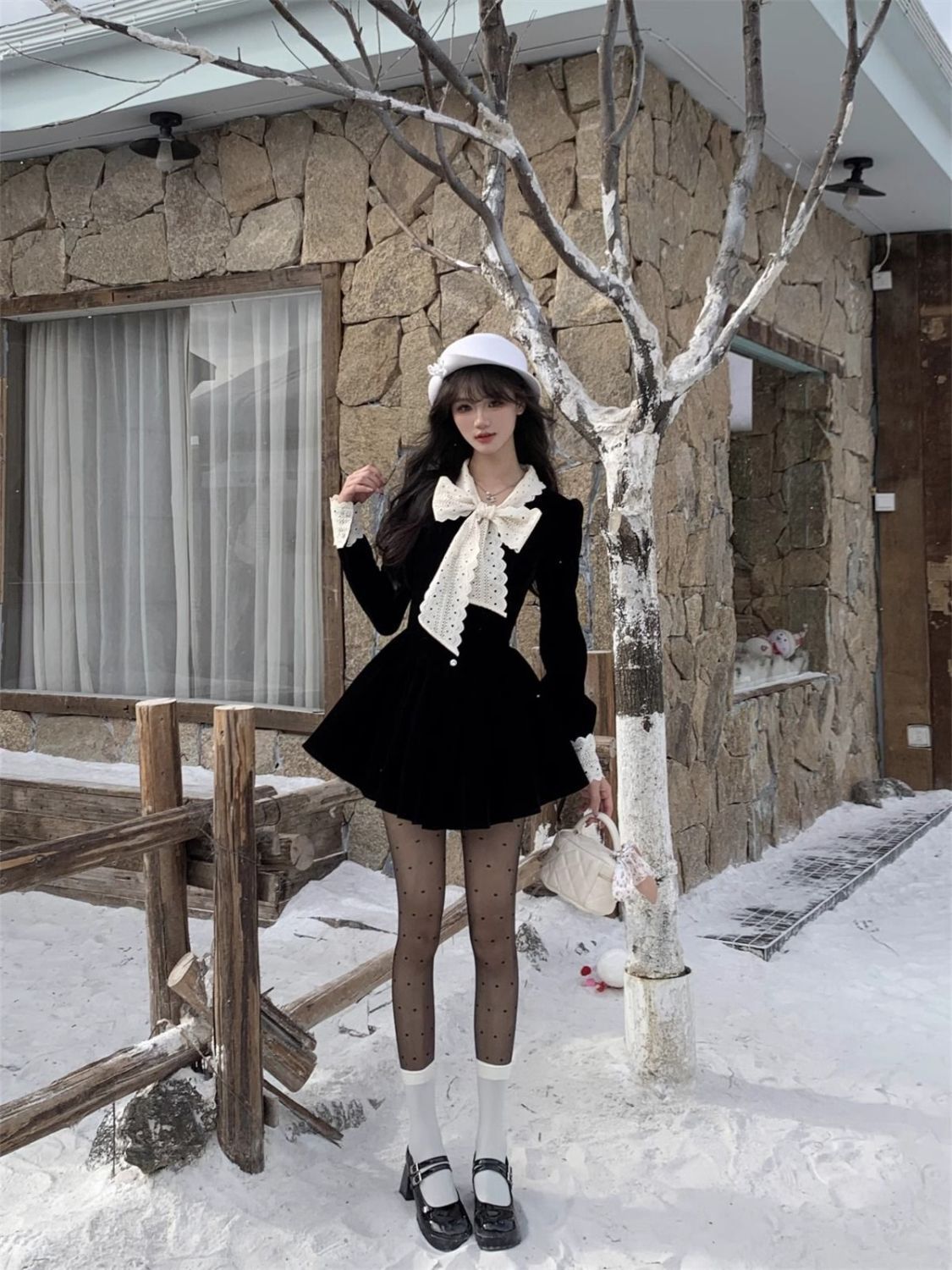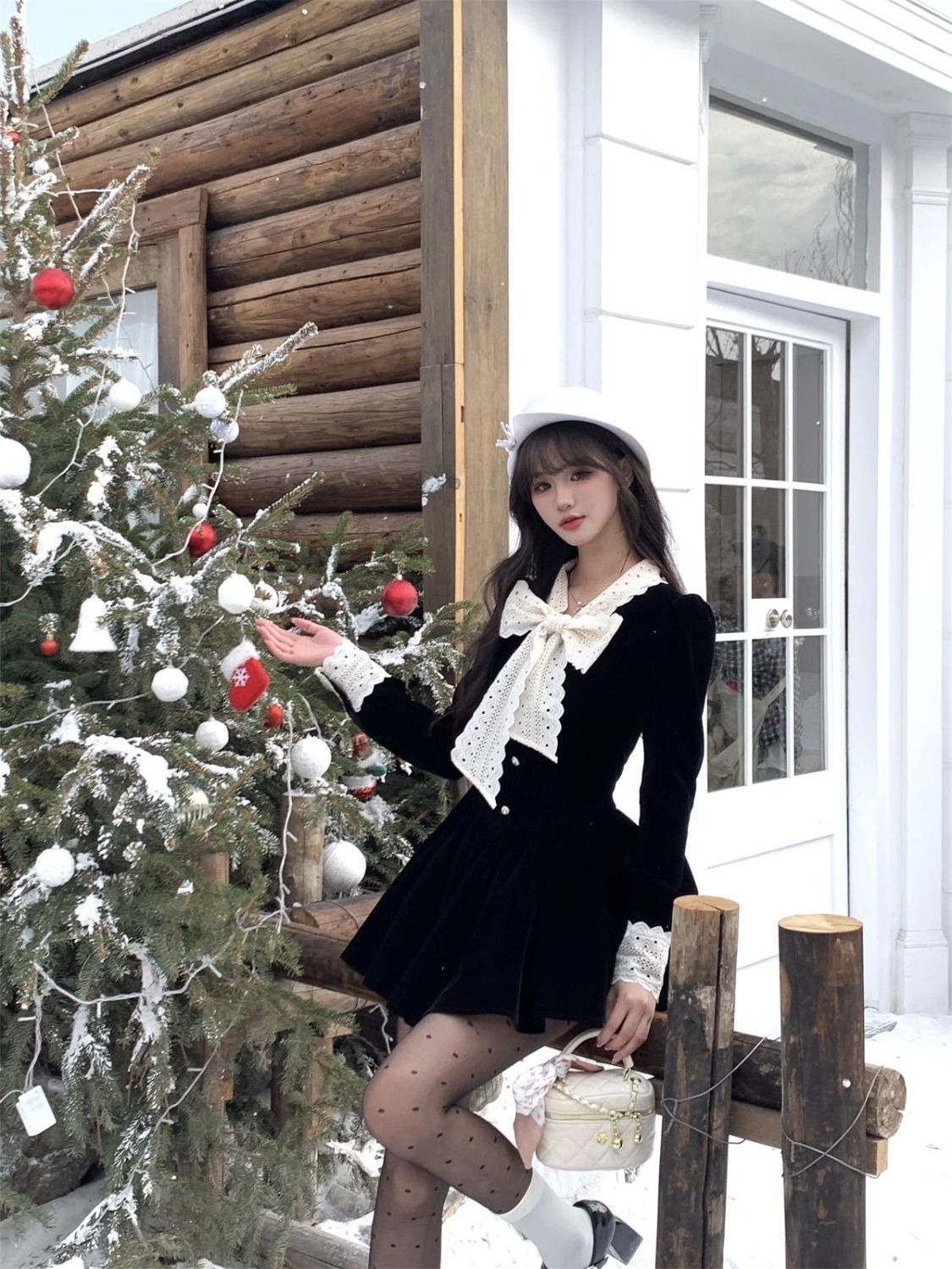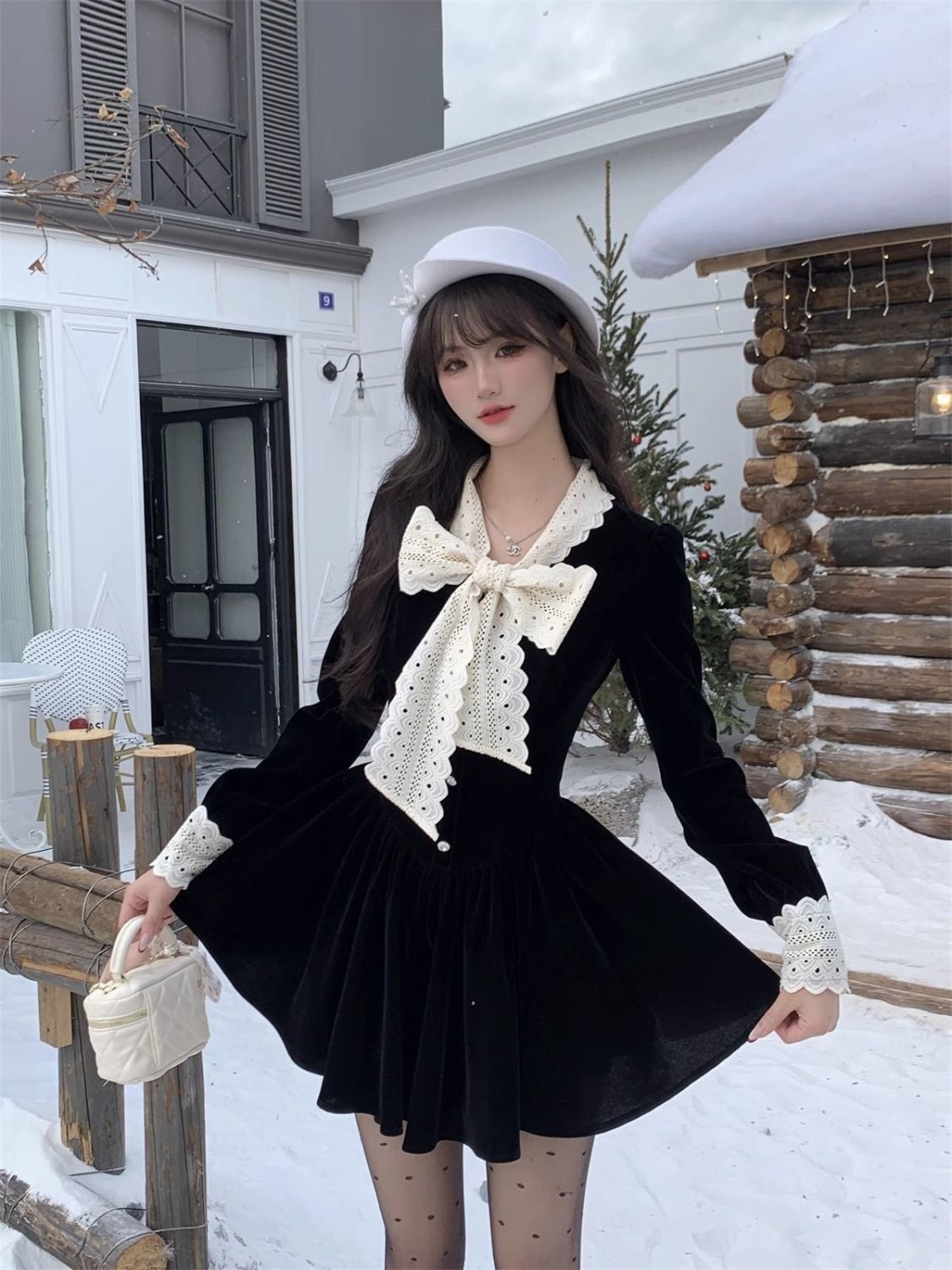 2025新款秋冬季富家千金黑色连衣裙女小香风穿搭感收腰公主裙