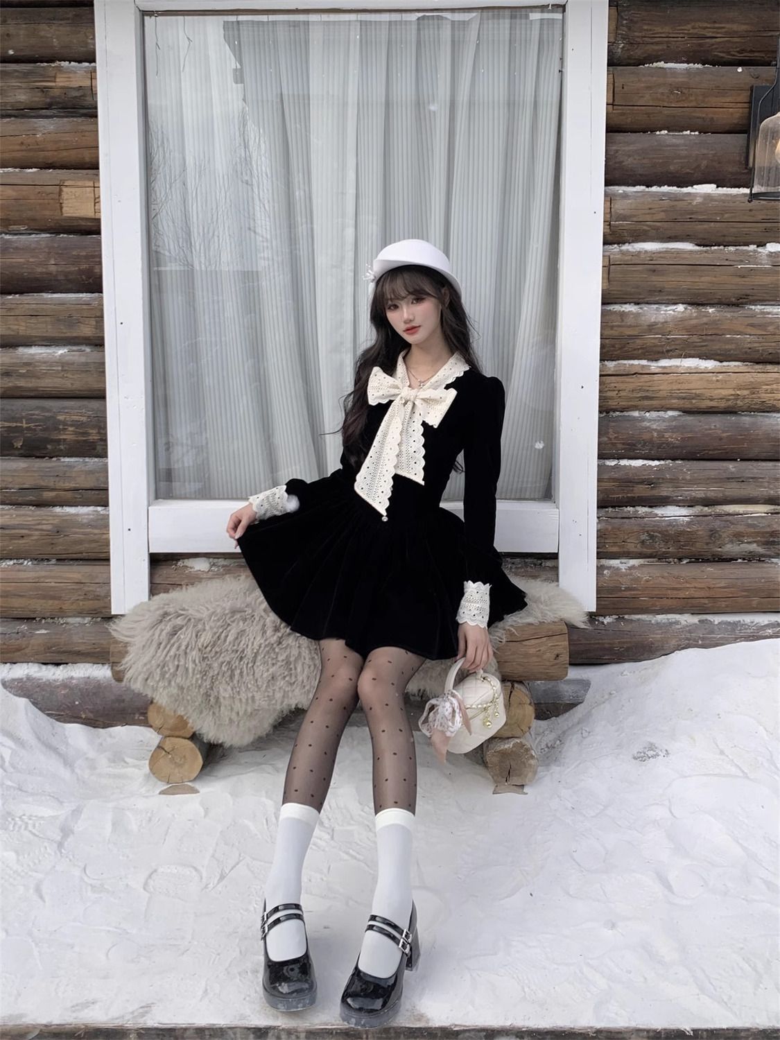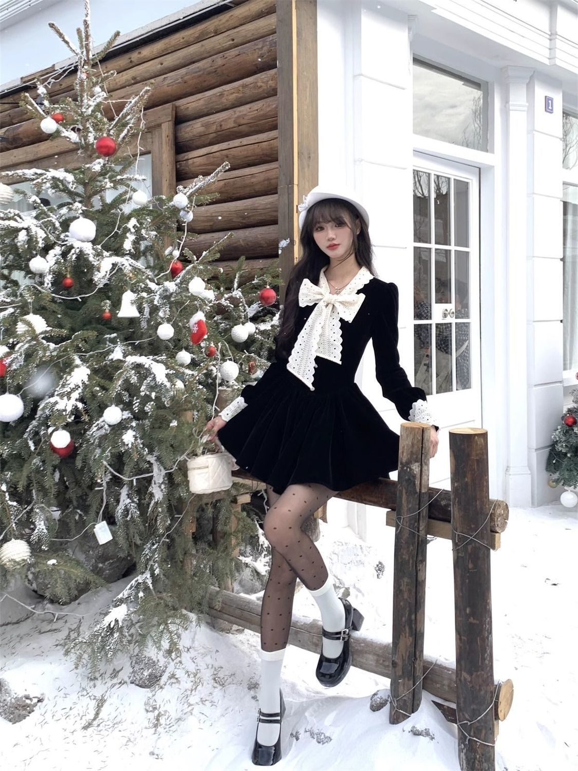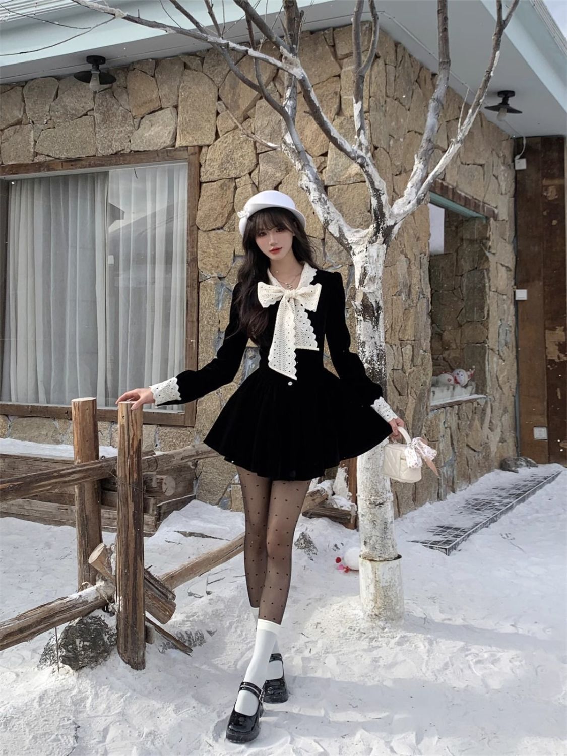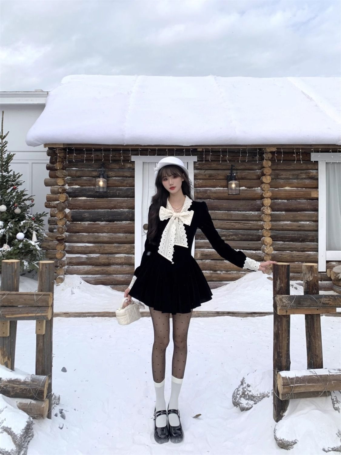 2025新款秋冬季富家千金黑色连衣裙女小香风穿搭感收腰公主裙
