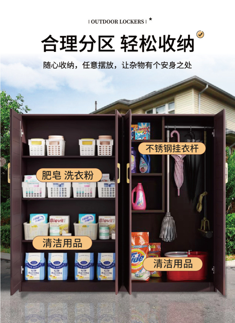 铝合金户外工具储物柜清洁卫生保洁柜铁锹渔具收纳柜室外防水防晒