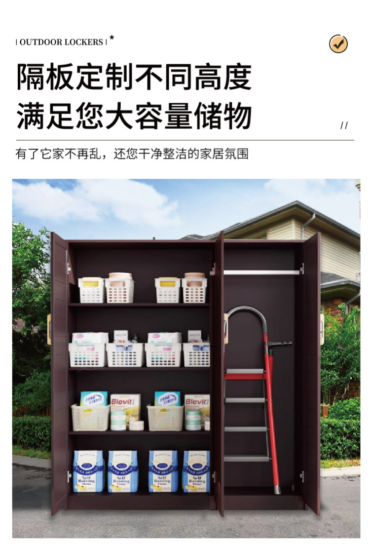 户外工具储物柜庭院钢制百叶门收纳柜别墅庭院防水防晒花园杂物柜