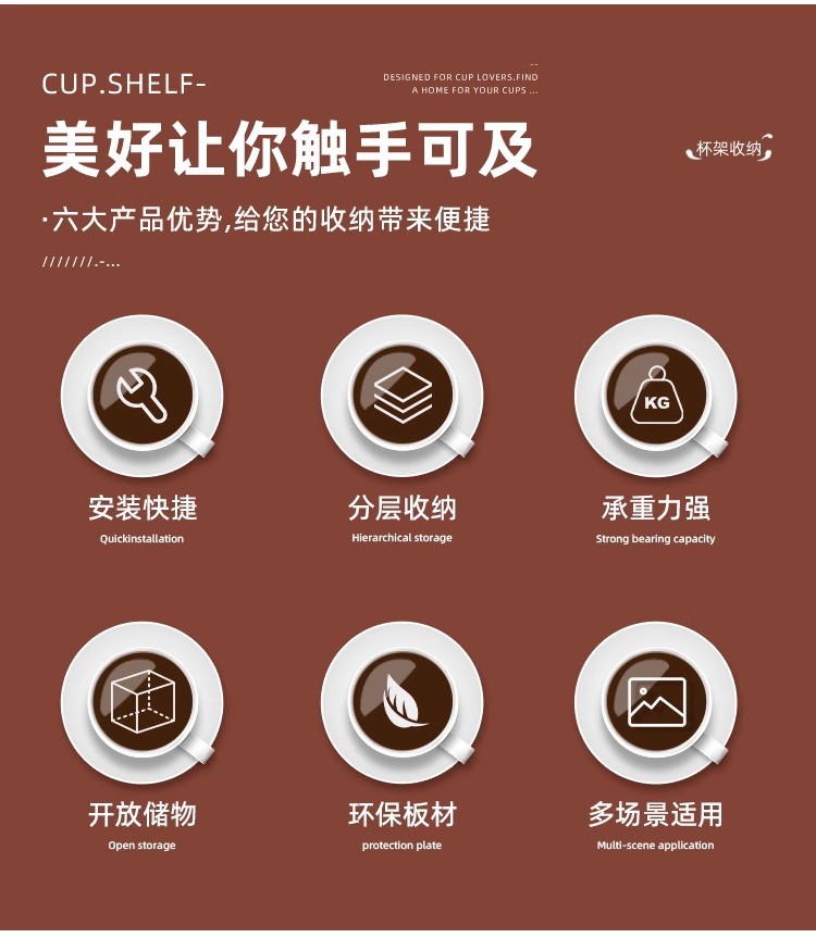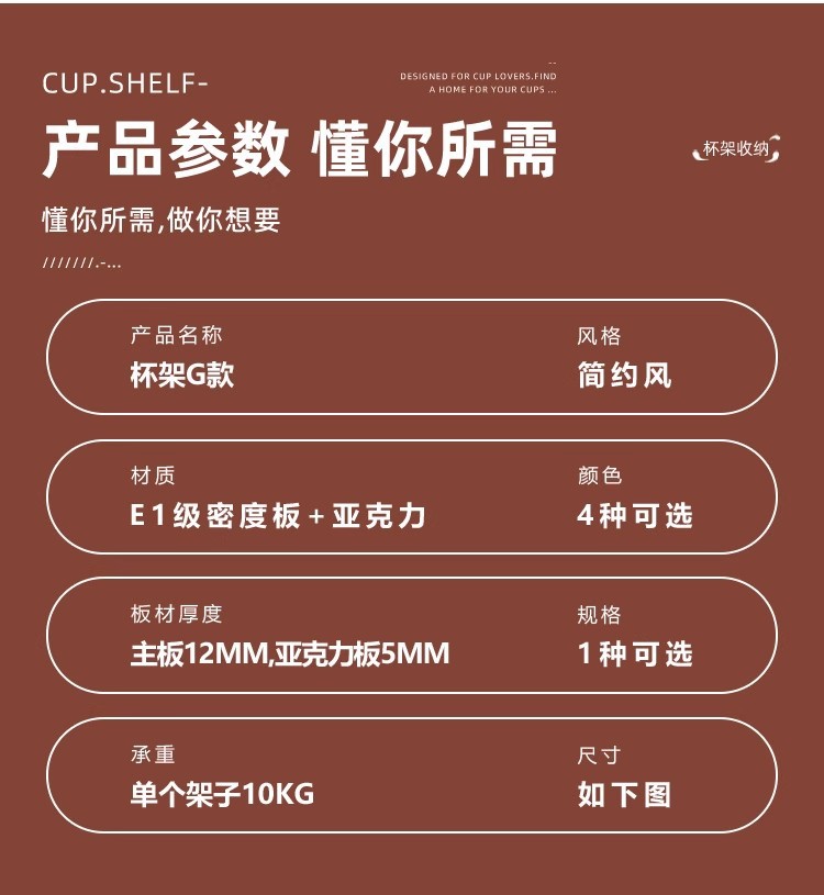 颜色 杯架【白色-透明】,杯架【木纹-长虹】,杯架【胡桃-黑茶】,杯架【黑色-红茶】