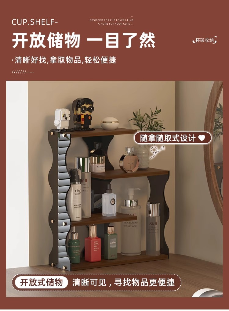 轻奢高级感首饰化妆品收纳架杯架桌面护肤品梳妆台口红香水置物架