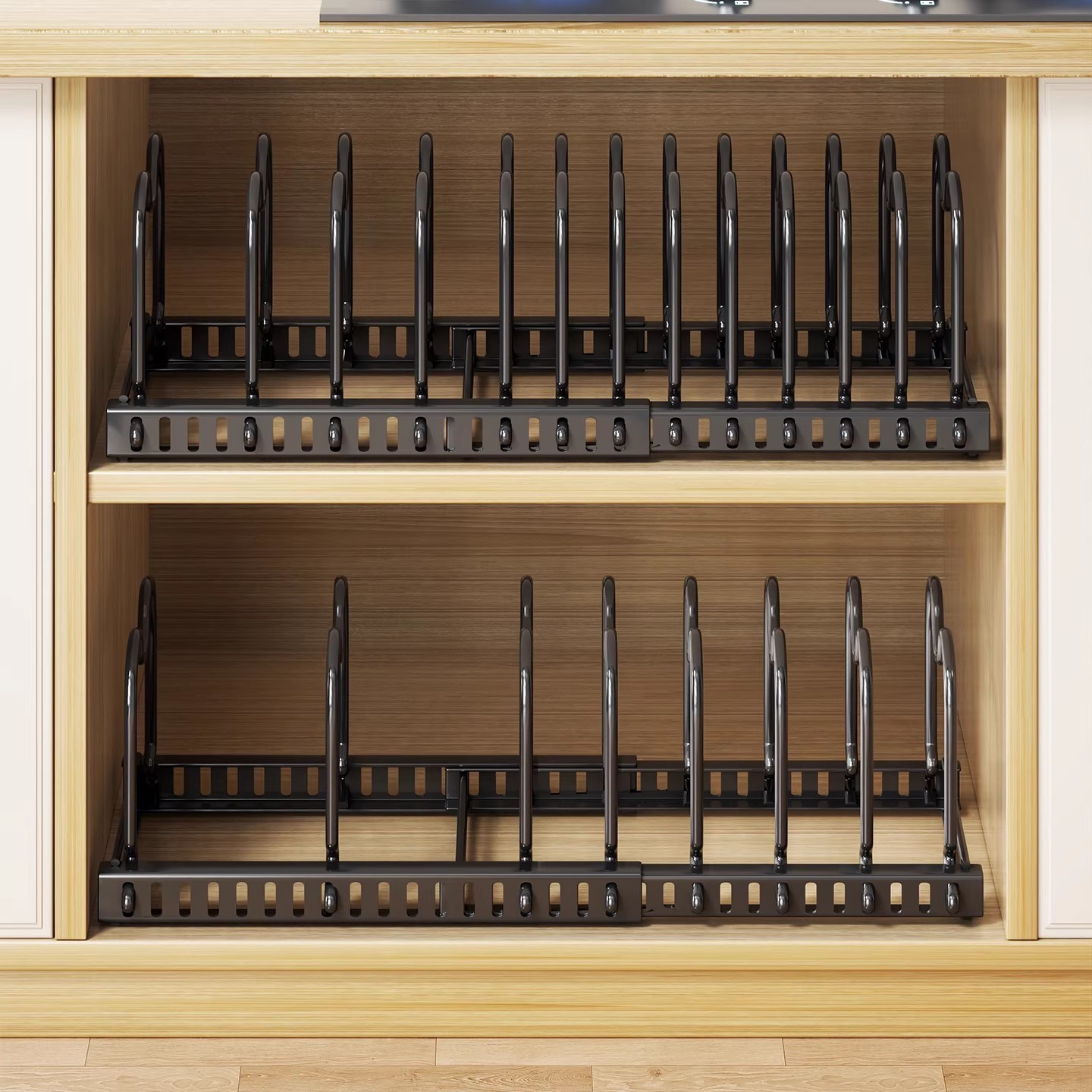 厨房置物架可调节伸缩橱柜内锅具厨具收纳放锅架餐具碗碟架锅盖架