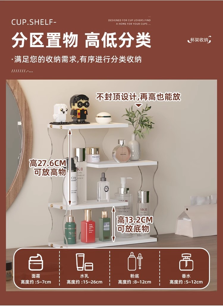 梳妆台桌面化妆品收纳架多功能护肤品整理架亚克力香水香薰置物架