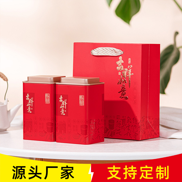 茶葉簡易赤緑茶包装箱空礼箱鉄缶プレゼント通用龍井茶半斤入金駿眉茶箱