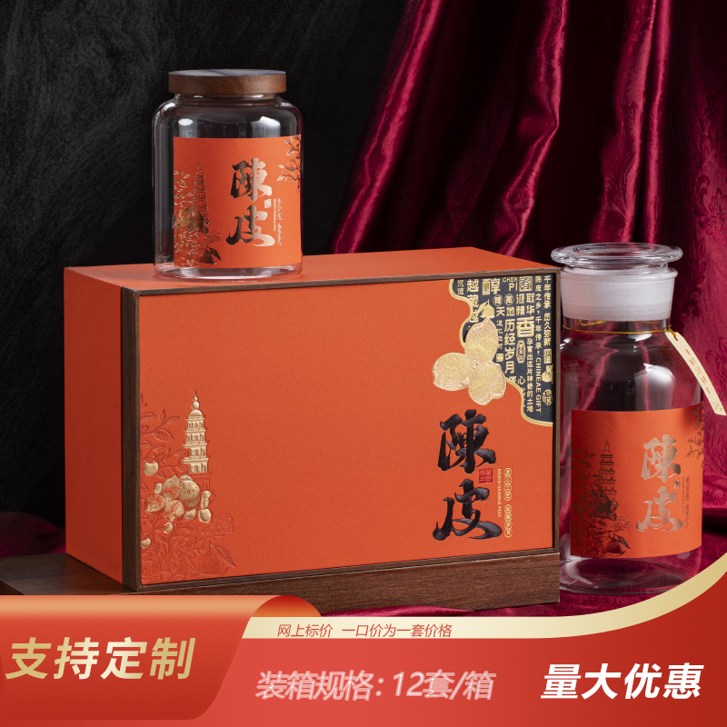 陈皮包装盒空礼盒半斤玻璃瓶密封储存罐新会陈皮包装盒空礼盒定制