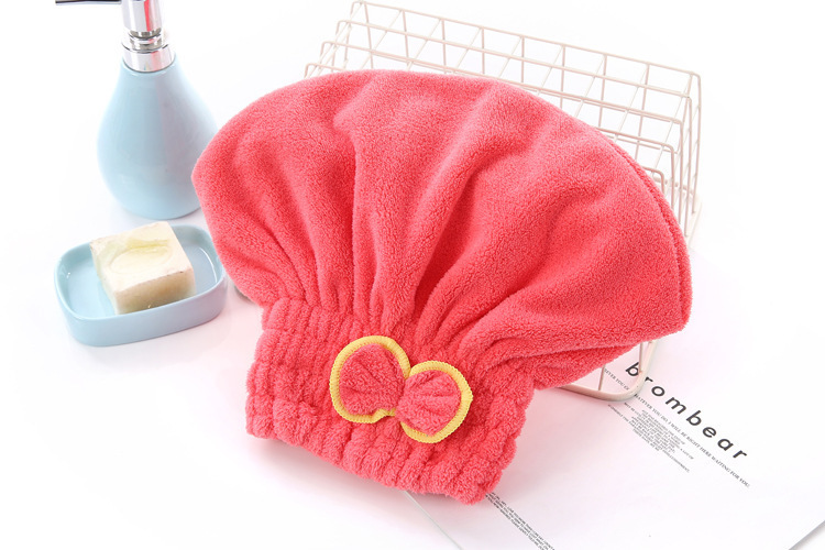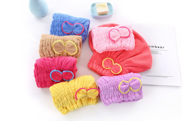 干发帽女吸水加厚新款可爱蝴蝶结擦头发毛巾秋冬洗头珊瑚绒浴帽