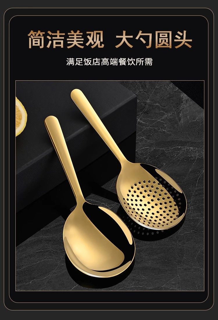 304不锈钢分餐勺子金色大号家用大饭勺汤勺漏勺酒店专用的公用勺