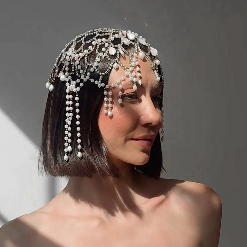 国境を越えた新しい真珠のフリンジヘアの個性的な舞台ショーファッションディナードレスの髪飾り花嫁の結婚式の髪飾り