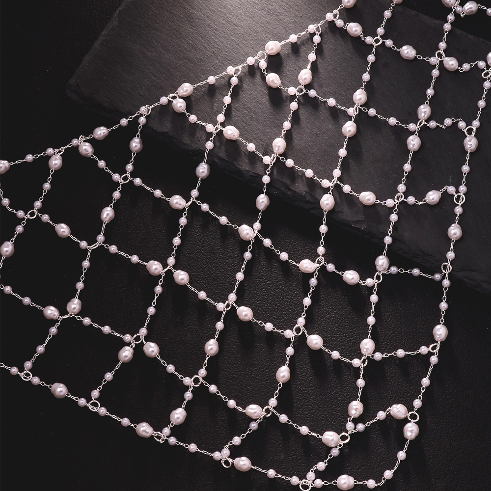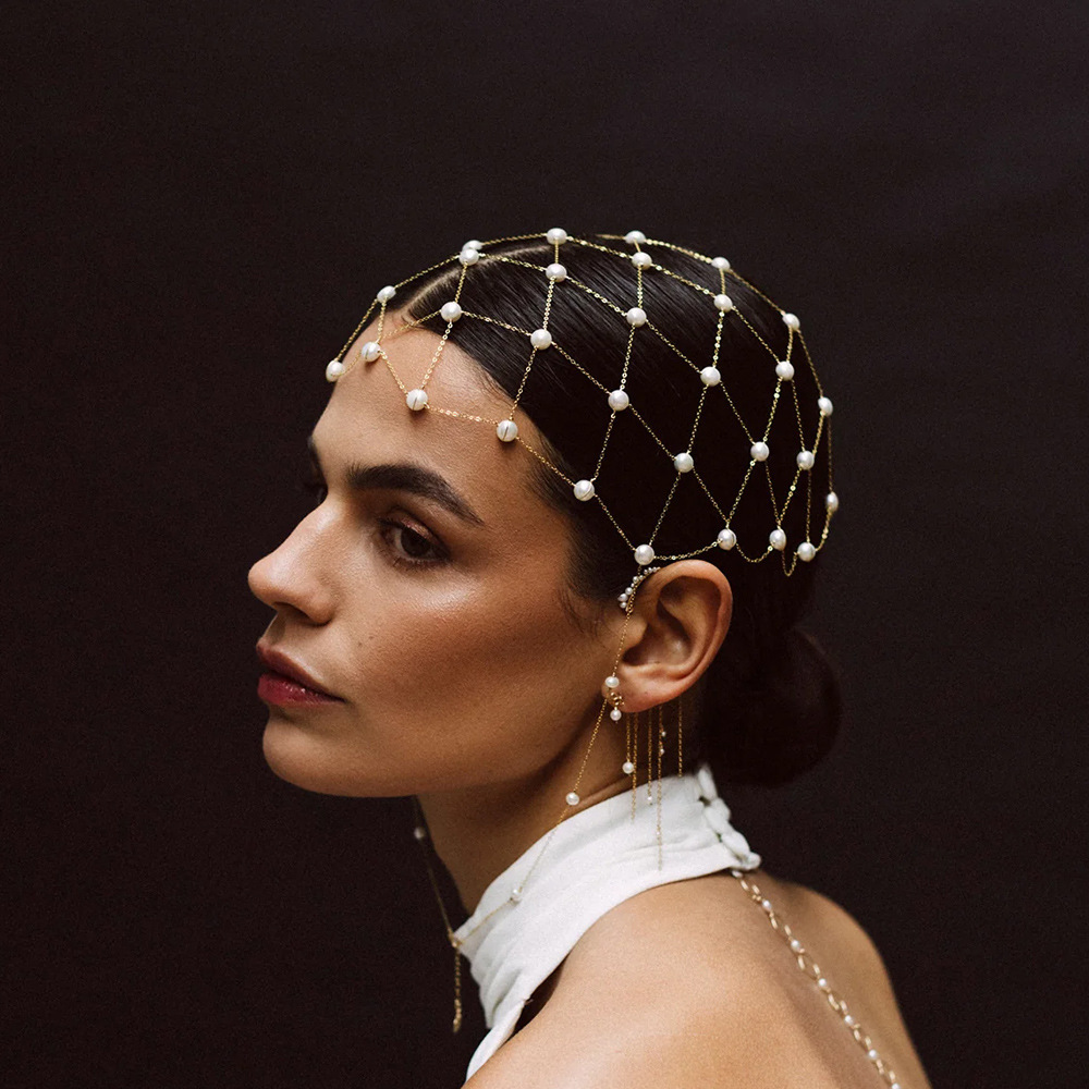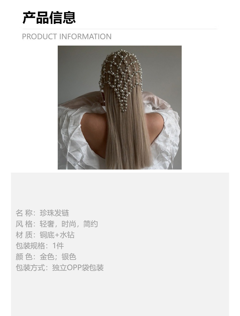 欧美爆款网状仙女发链氛围感珍珠头饰新娘百搭配饰hair chain