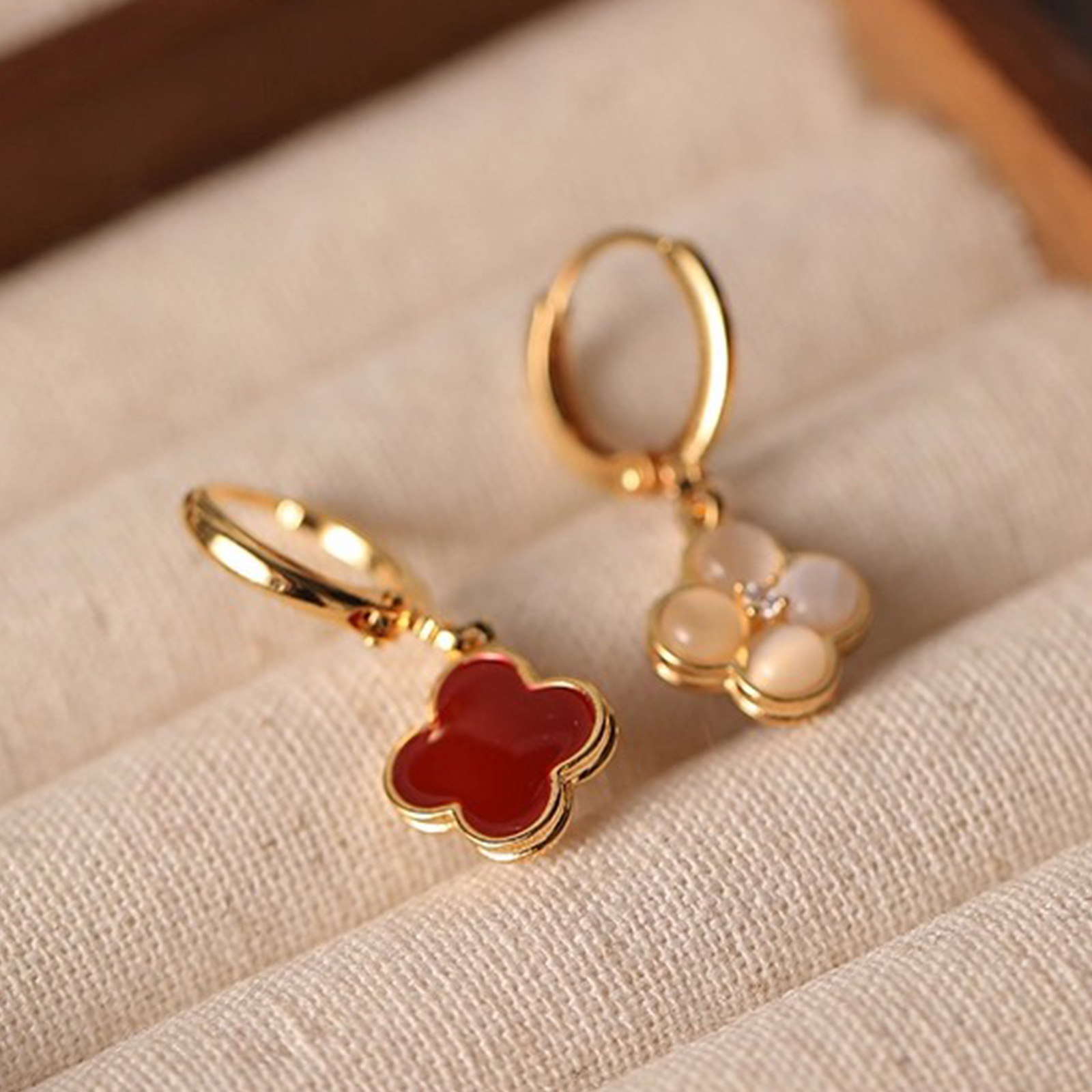 安可拉红四叶草耳环女轻奢高级感双面耳扣秋冬红色适合过年的耳饰