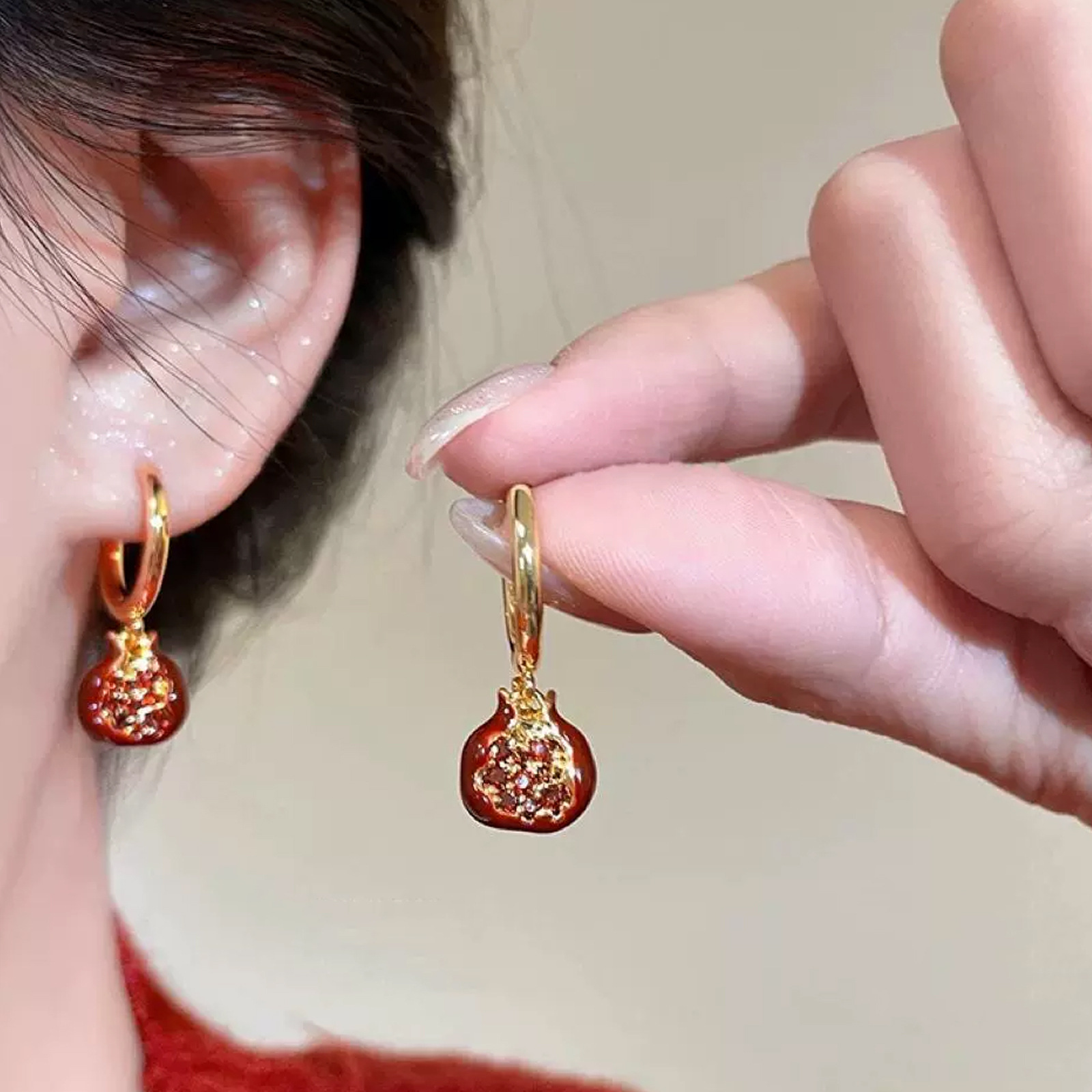 红色秋冬石榴耳钉女2025年新款爆款精致耳饰轻奢高级感巨好看耳环