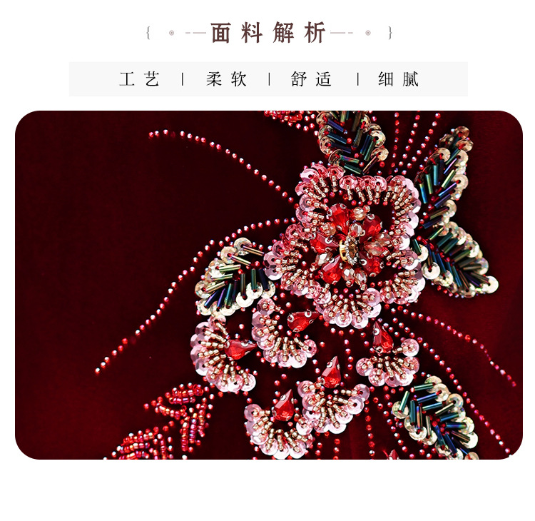 yqwl6971喜婆婆婚宴装礼服裙2025秋冬新款重工亮片收腰丝绒连衣裙