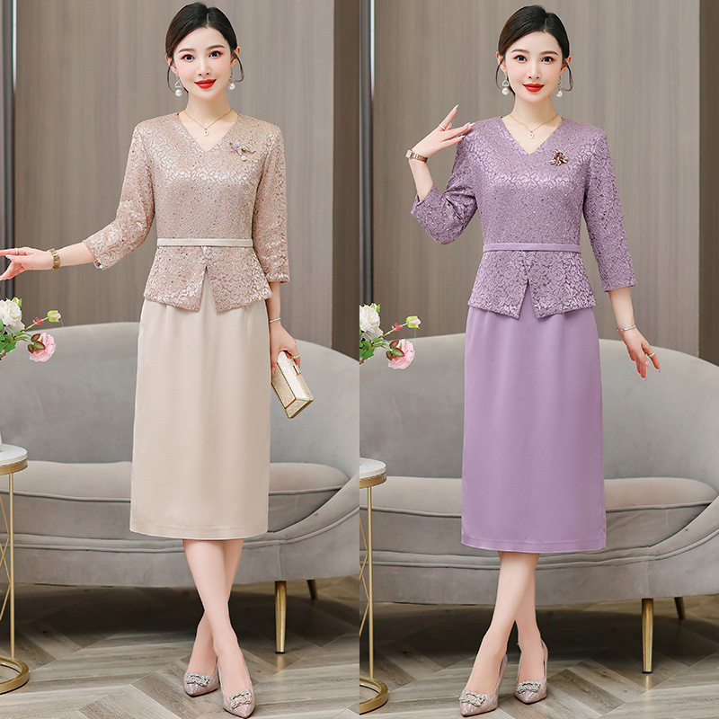 yqwl5629妈妈婚宴礼服裙2025秋冬新款气质优雅喜婆婆装敬酒连衣裙
