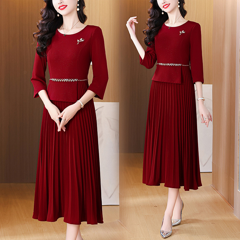 yqwl5650婚礼妈妈婚宴礼服2025秋冬新款喜婆婆装敬酒镶钻连衣裙