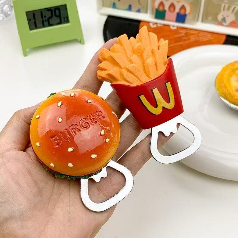 麦当当汉堡薯条开瓶器磁吸冰箱贴家用创意多功能啤酒起子装饰摆件