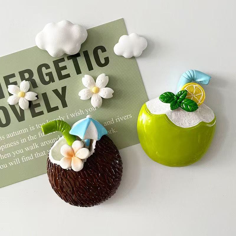海南ジュース冷蔵庫貼りネット赤冷凍デザート樹脂磁気貼り夏ビーチ飲料装飾貼り