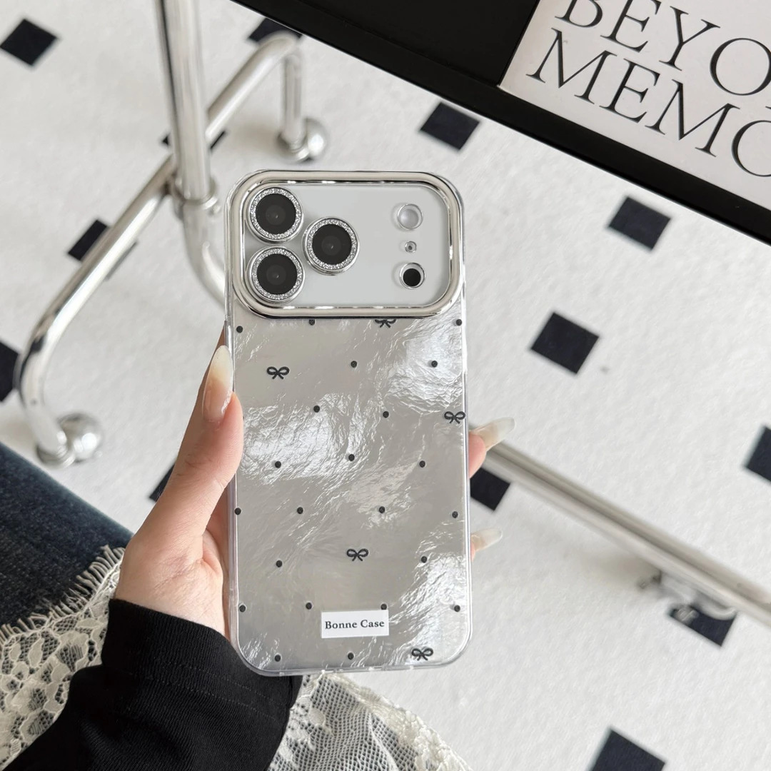 ins波点蝴蝶结适用苹果17Promax手机壳IP16/15精孔冰川纹14简约套