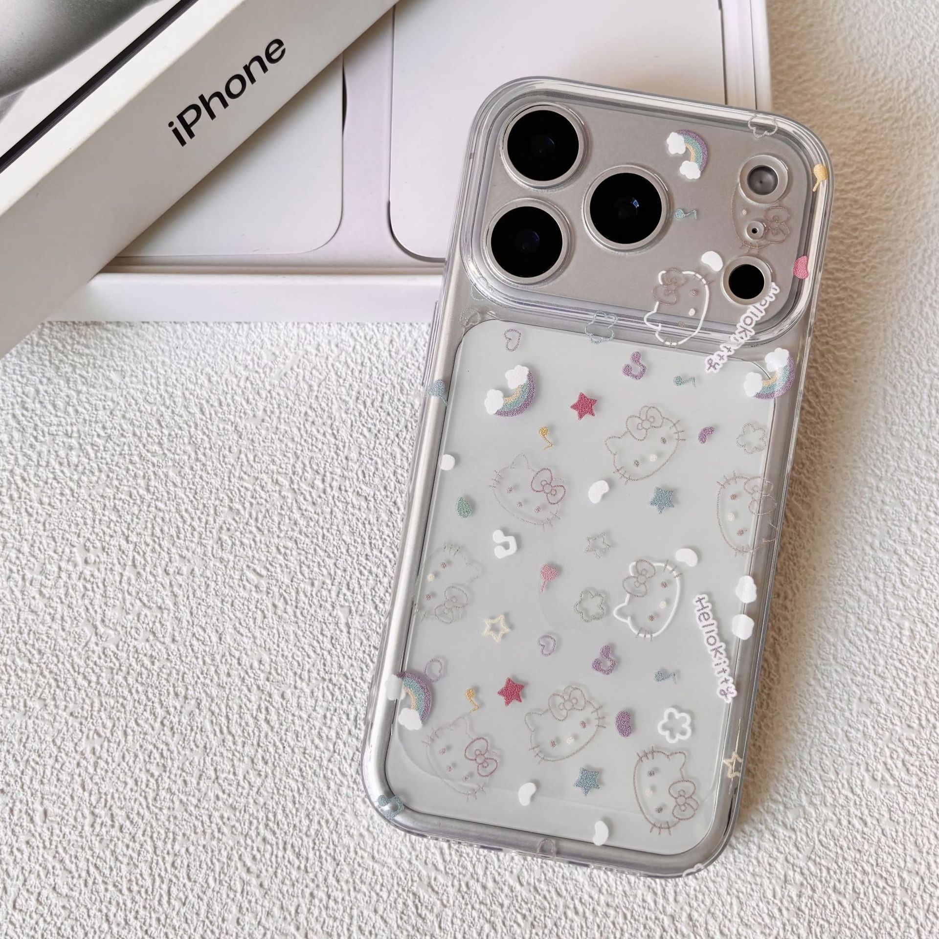 彩虹线条kt猫太空壳适用苹果16/17手机壳IP15pro透明14女13软套12