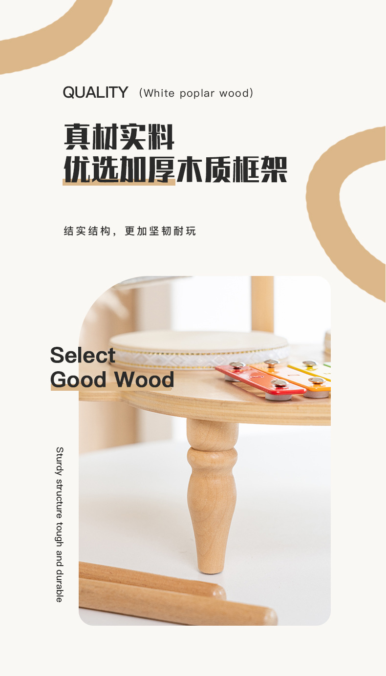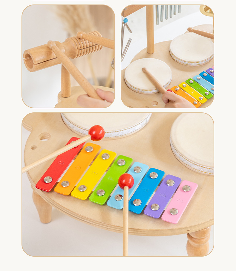 蒙氏木質早教多機能架子鼓は赤ちゃんの音楽の才能を解放します。