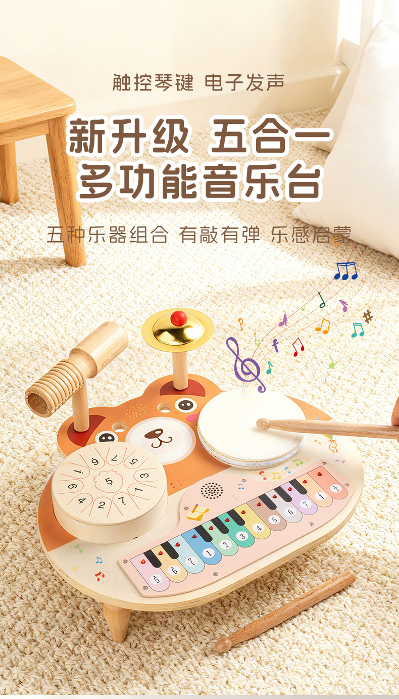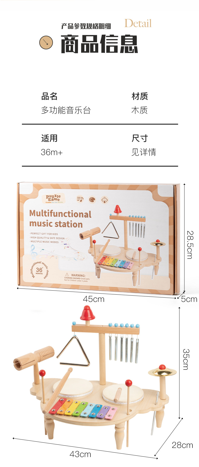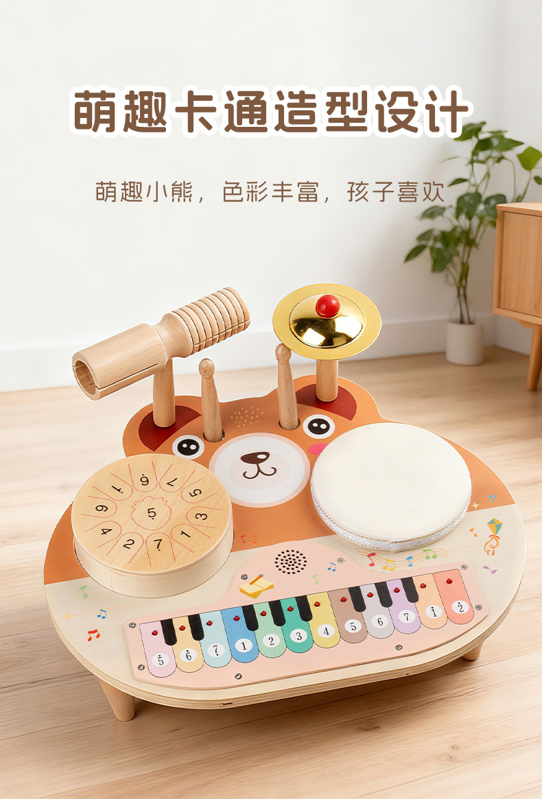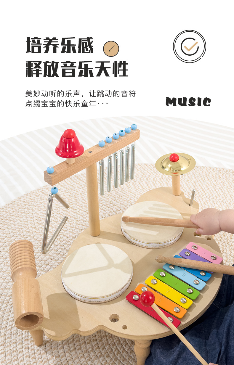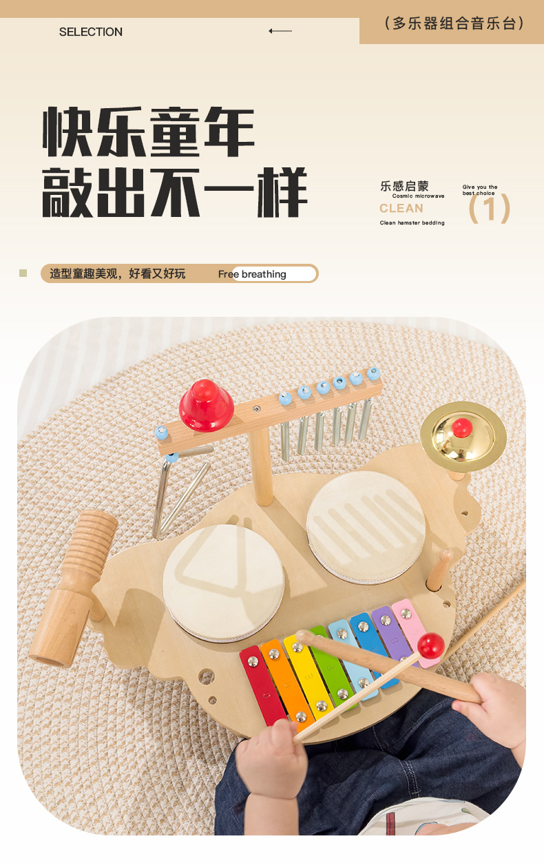 跨境木质多功能架子鼓音乐台敲琴奥尔夫打击乐器儿童早教益智玩具
