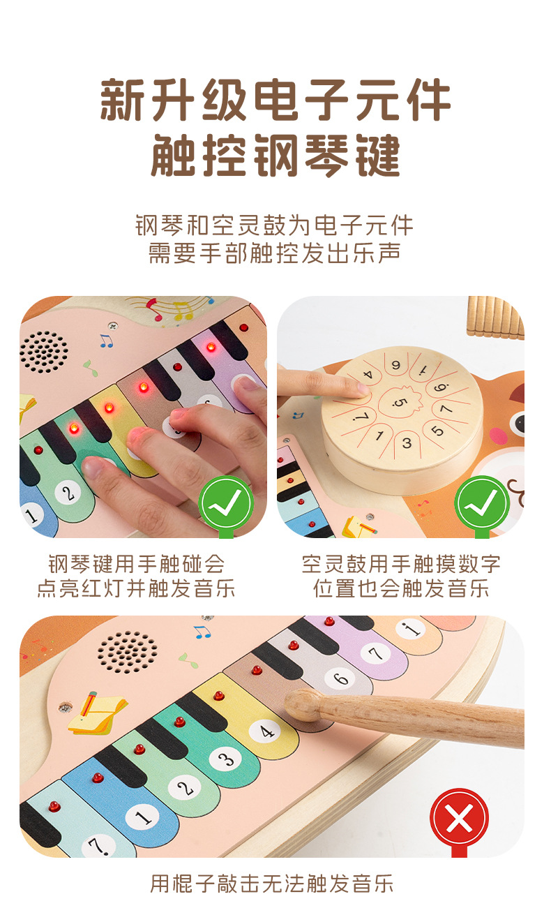 木製早教多機能ピアノ音楽認知知育啓蒙玩具赤ちゃんドラム楽器ままごと玩具