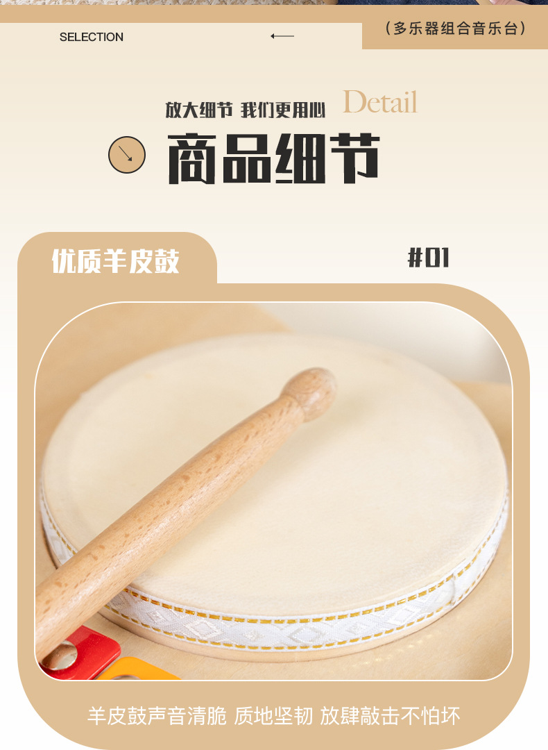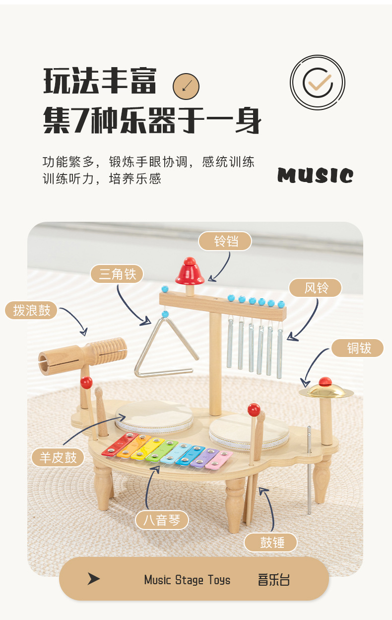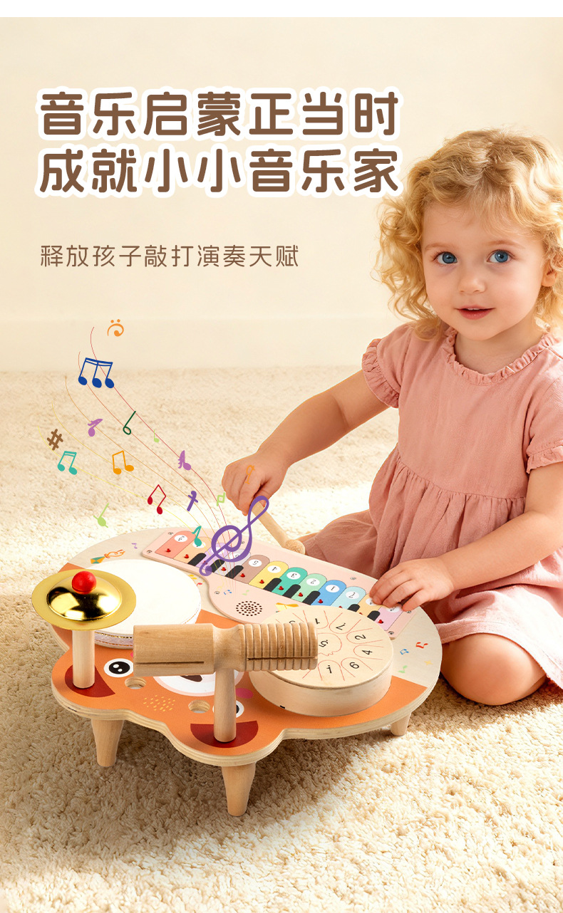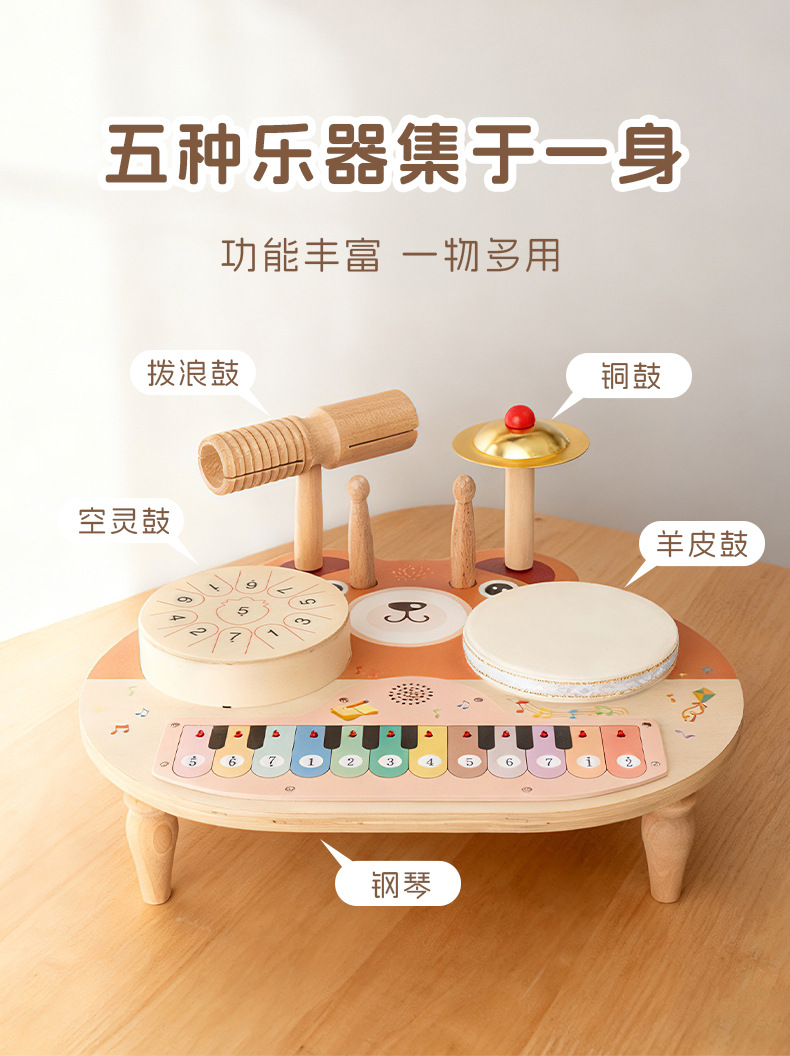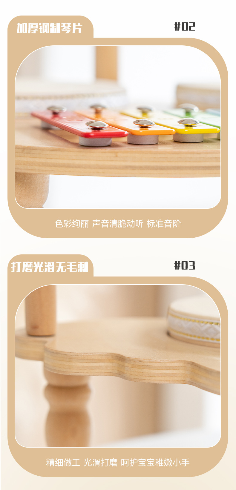 宝宝多功能音乐台木质奥尔夫打击乐器八音敲琴鼓儿童玩具架子鼓新