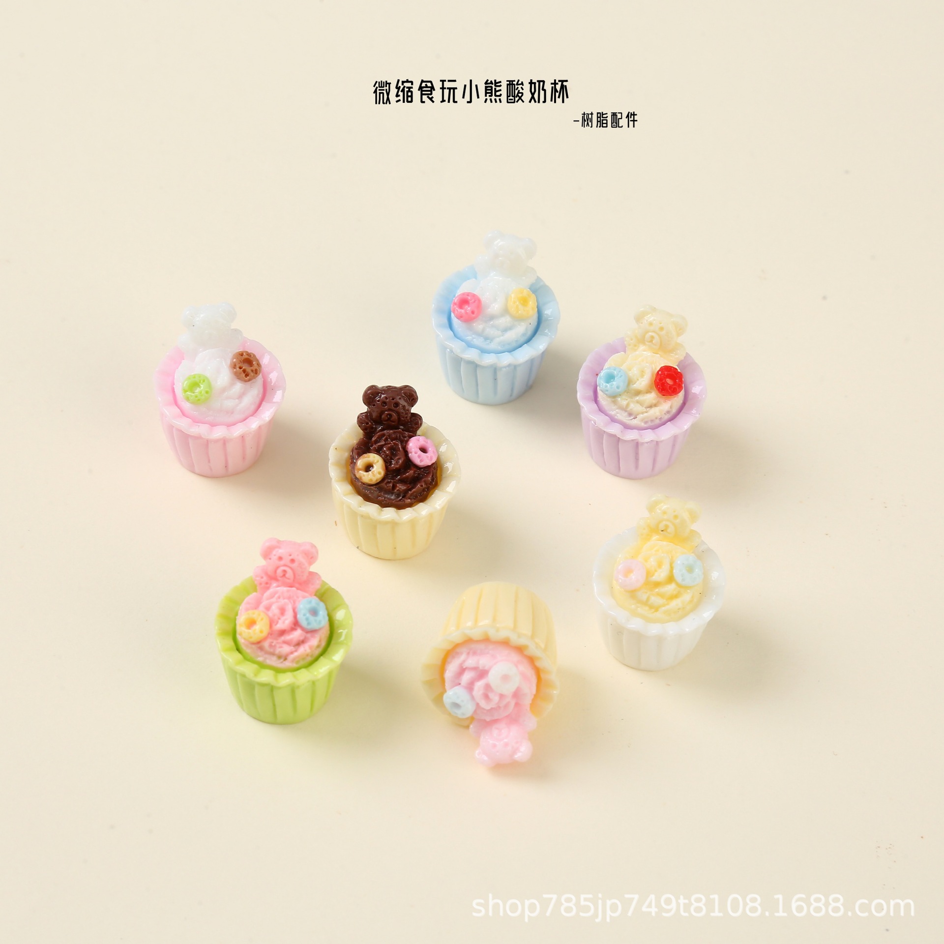 卸売樹脂製おもちゃアクセサリー ケーキクリーム接着剤 ヘアピン飾り 小熊ヨーグルトカップ 模造小物