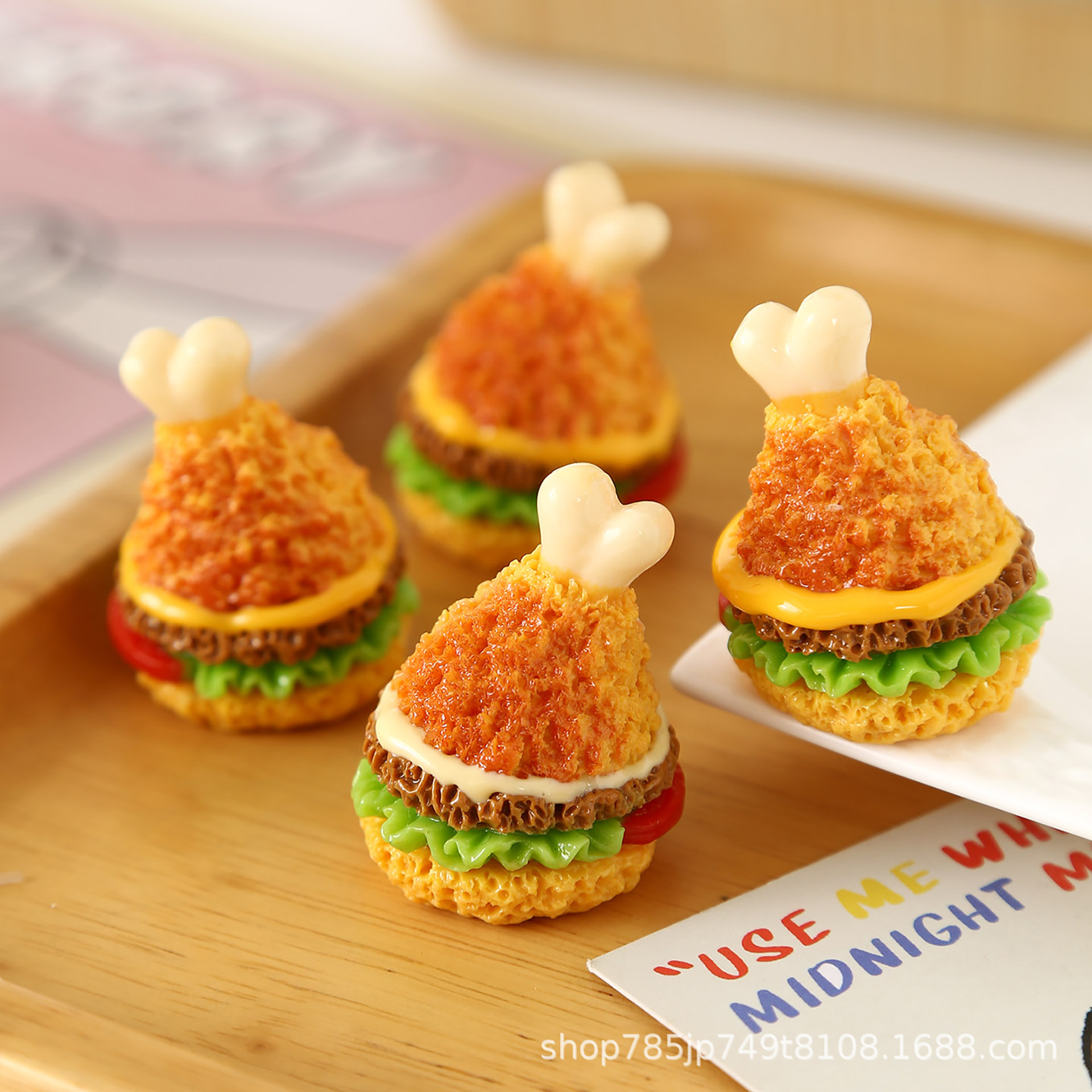 仿真蛋糕汉堡食玩配件 DIY材料批发鸡腿汉堡小摆件食玩树脂钥匙扣