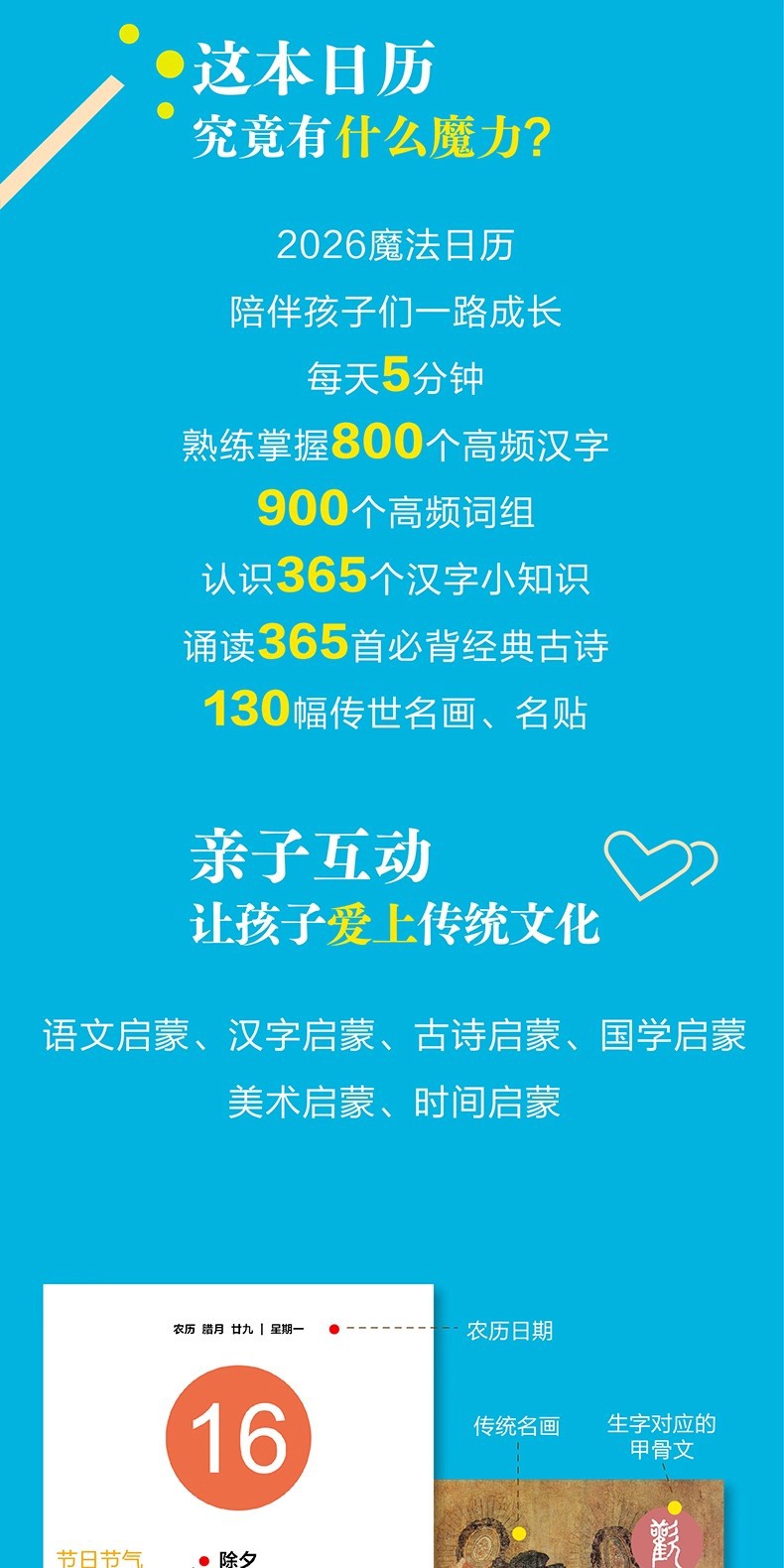2026给孩子的一日一诗 诗词 国画书法 节气 识字集一体的亲子日历